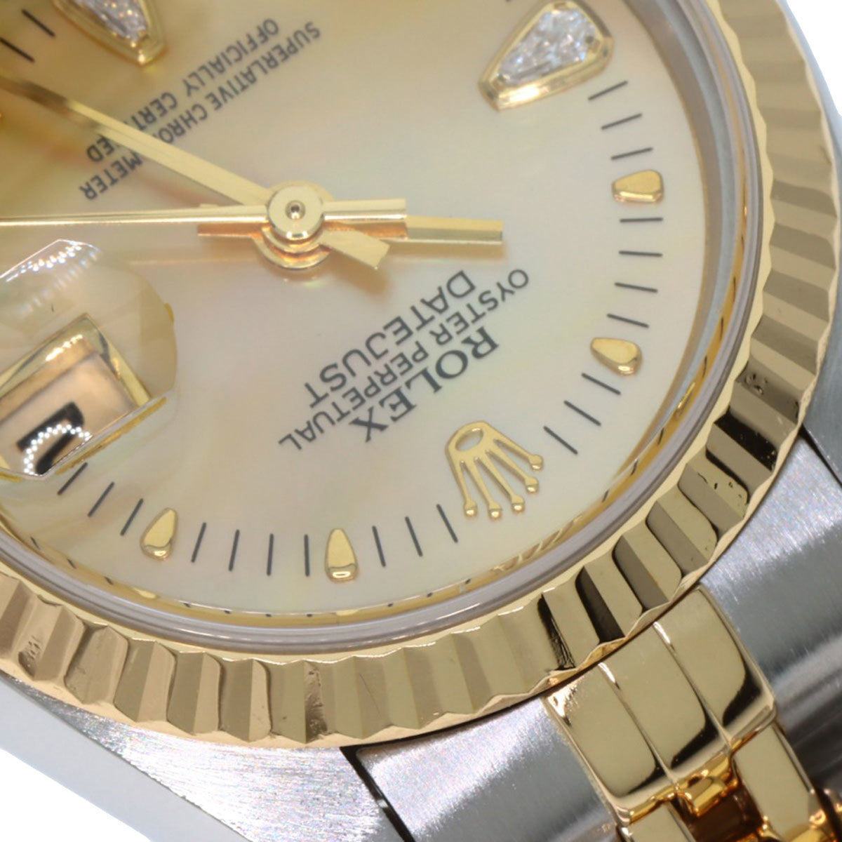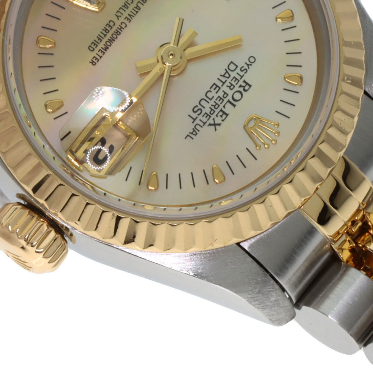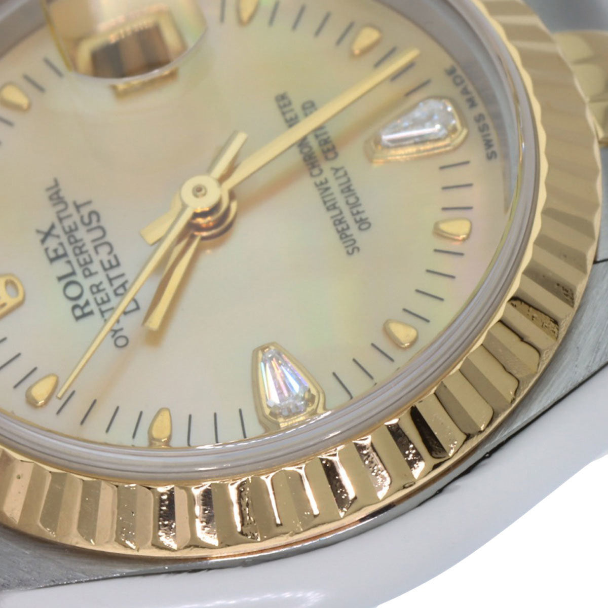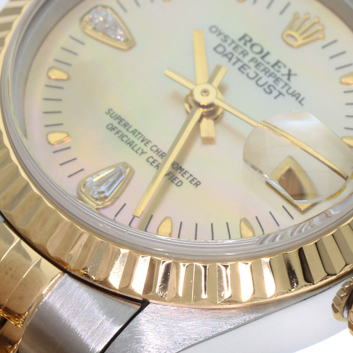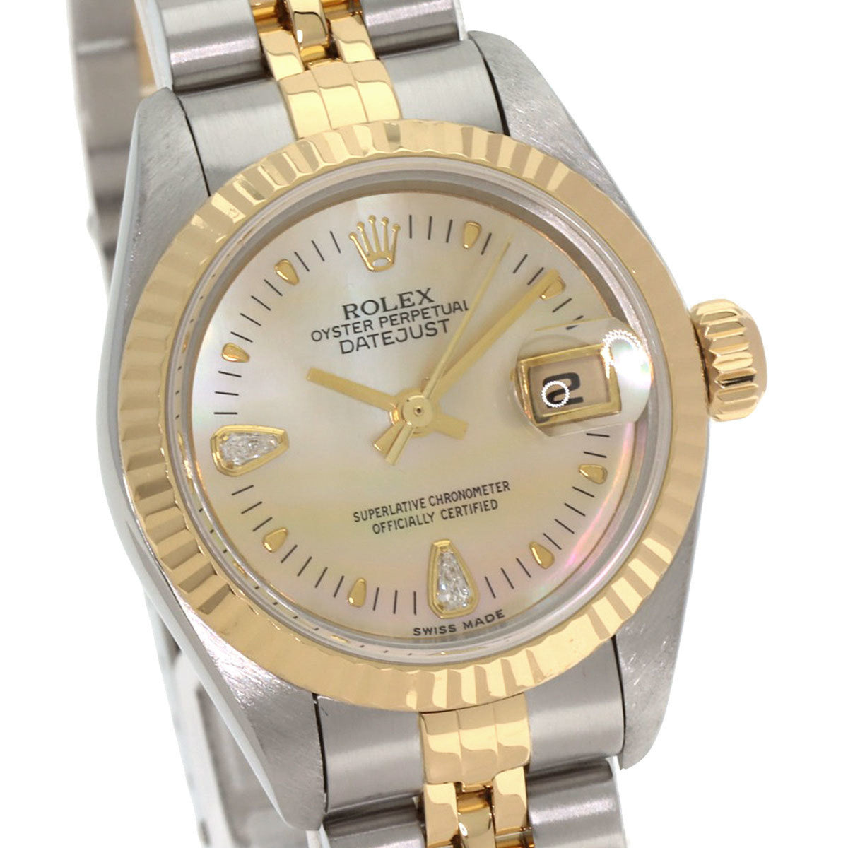 Pre-Owned Rolex 79173N2BR Datejust Yellow Shell with Two Diamonds, Stainless Steel Watch, 18K Gold, Women's