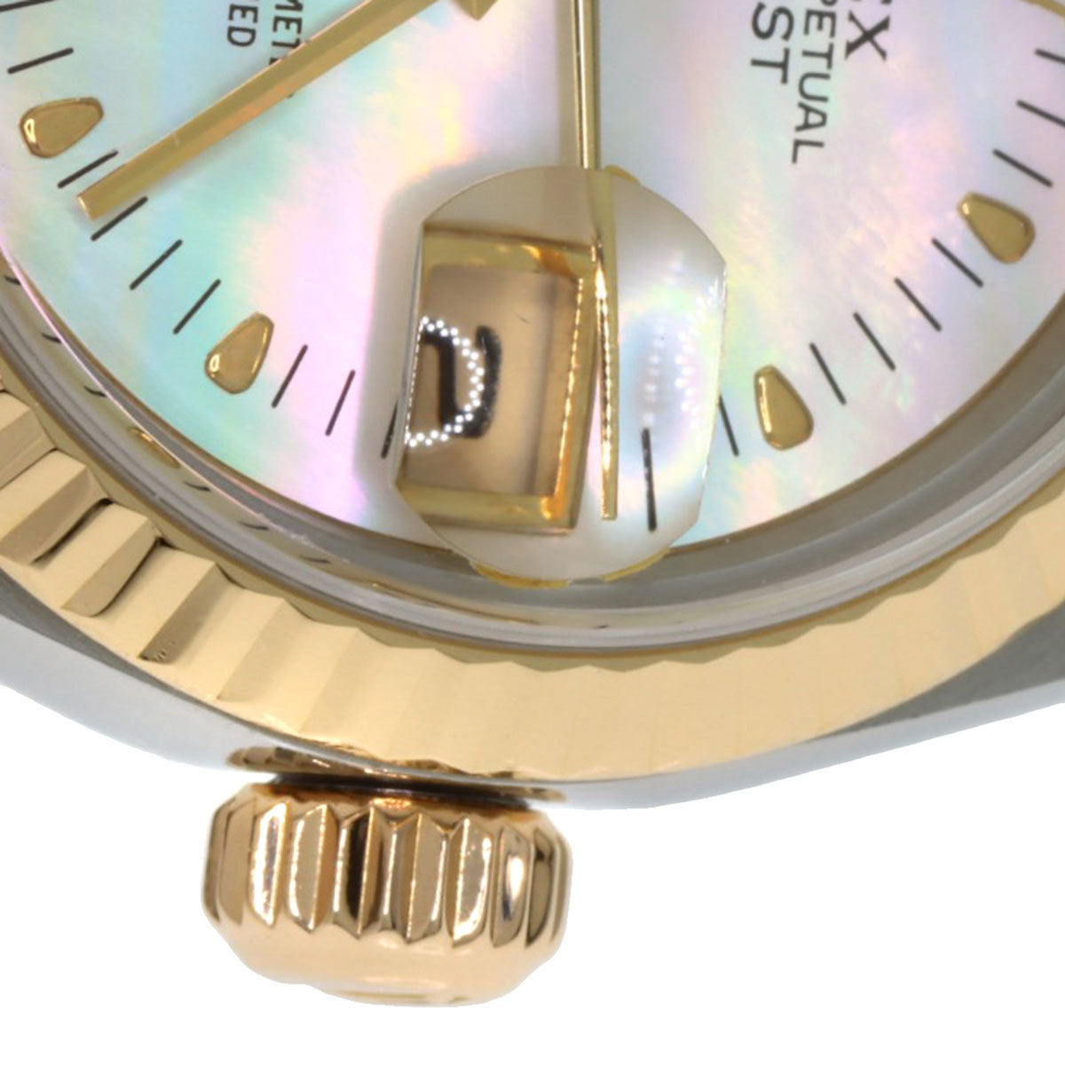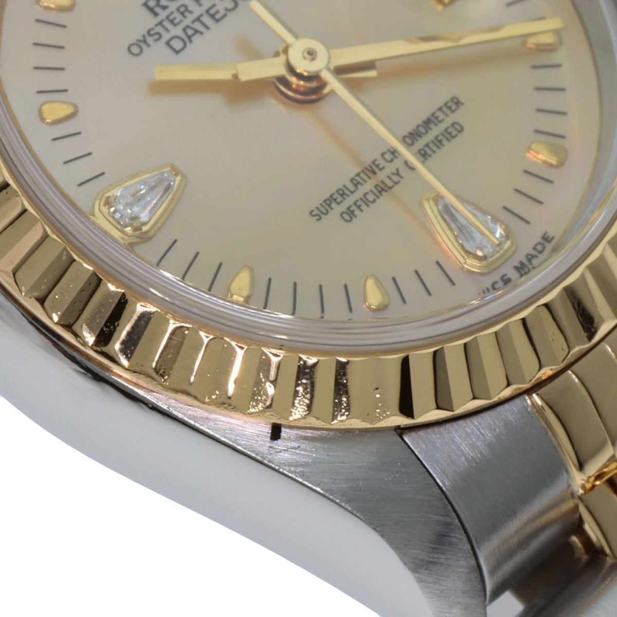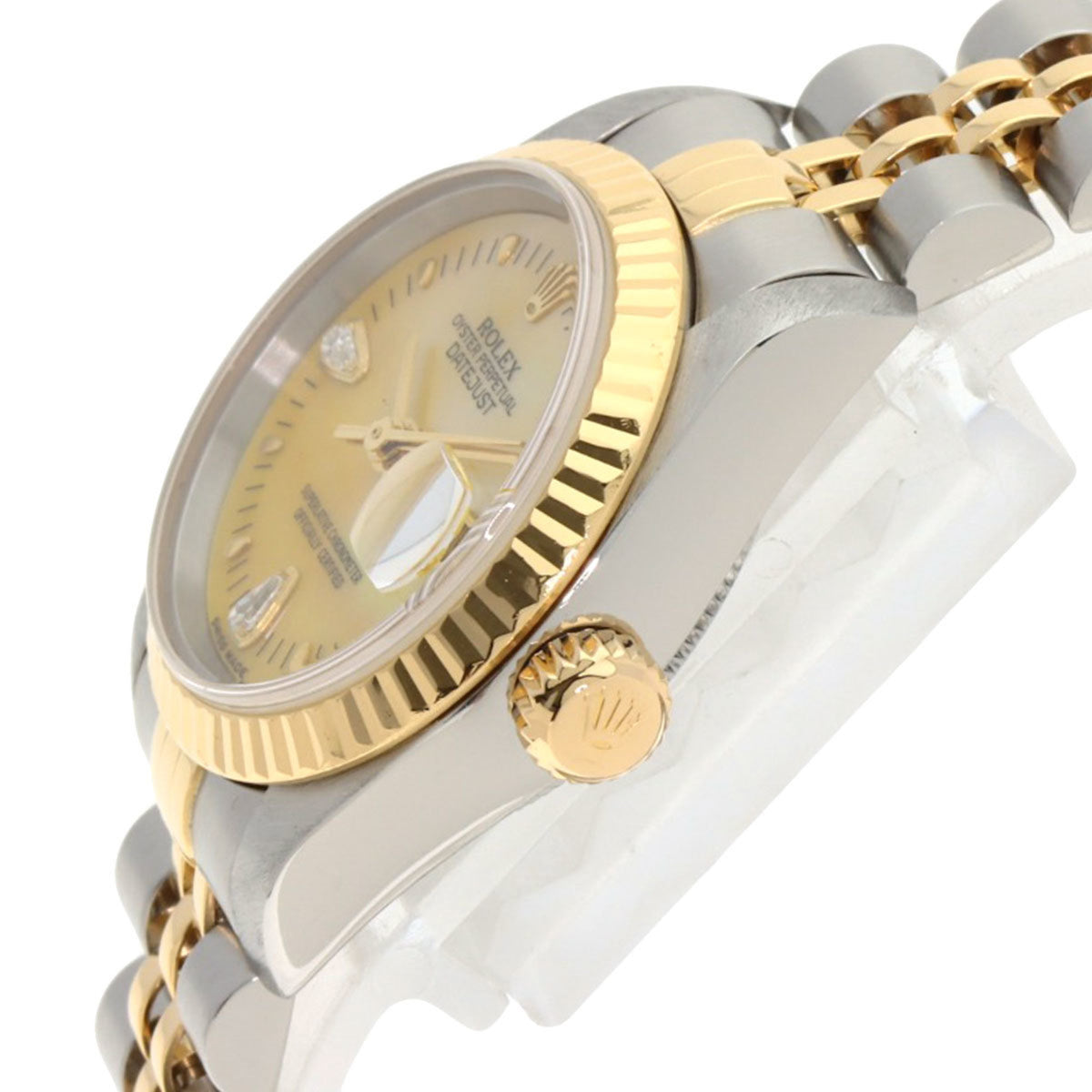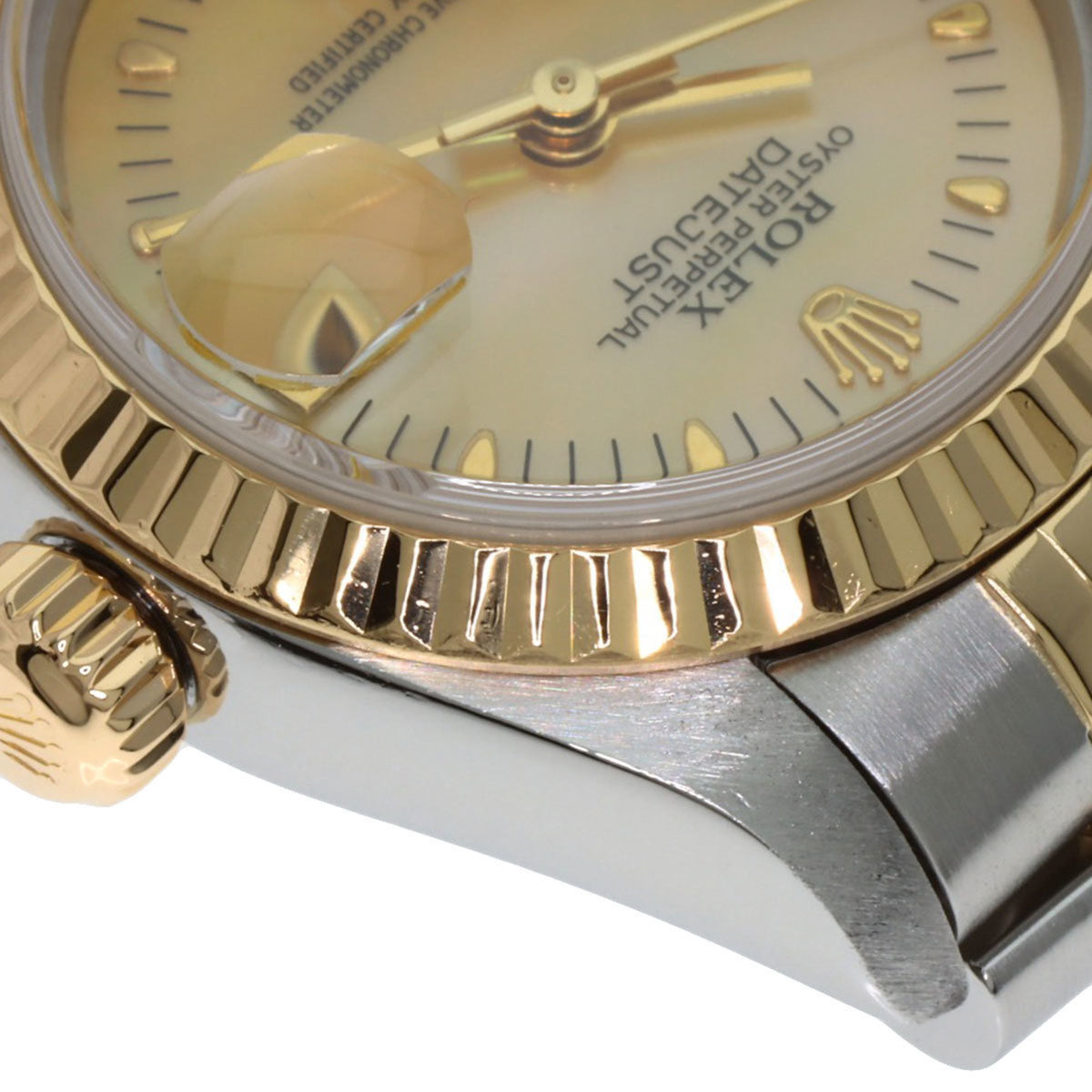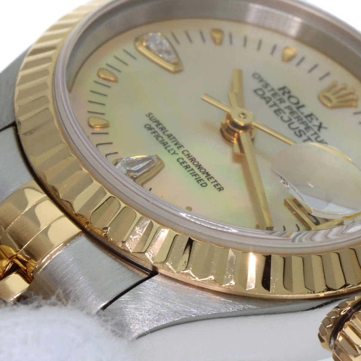 Pre-Owned Rolex 79173N2BR Datejust Yellow Shell with Two Diamonds, Stainless Steel Watch, 18K Gold, Women's