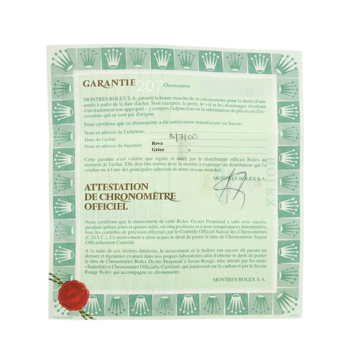 - Accessories: Certificate
