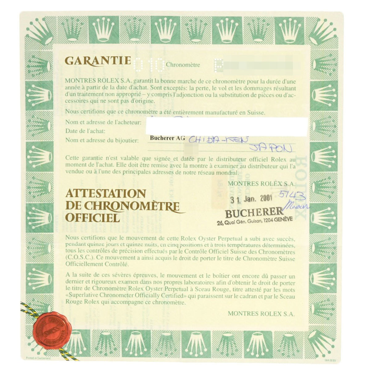 - Accessories: Certificate