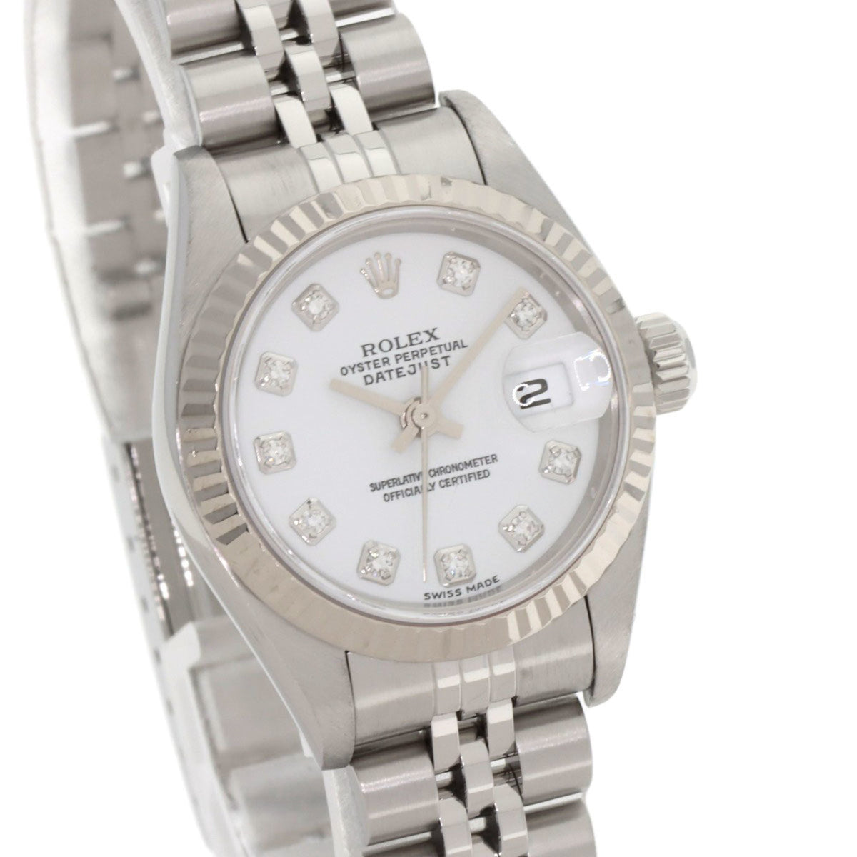 Pre-Owned Rolex 79174G Datejust 10P Diamond Watch in Stainless Steel SS 18K White Gold for Women