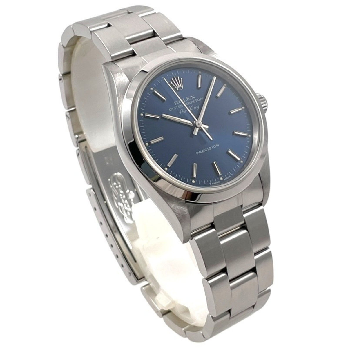 Pre-Owned ROLEX Air-King 14000 Men's Stainless Steel Automatic Watch with U-number and Blue Dial