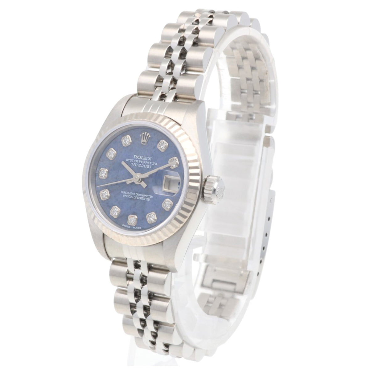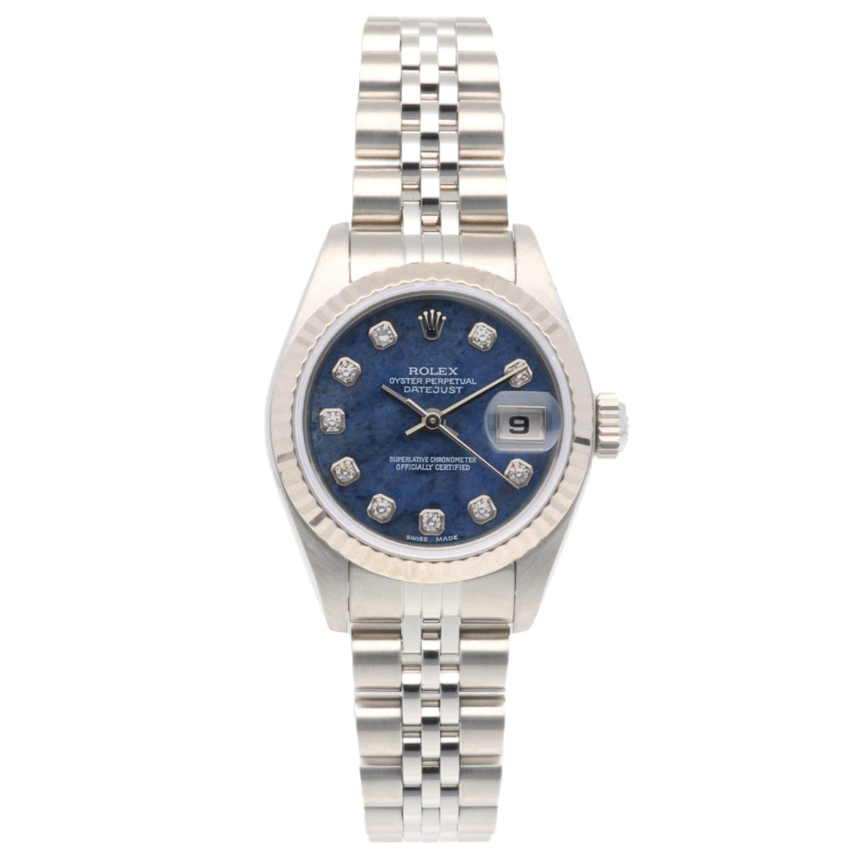 Pre-Owned Rolex Datejust Oyster Perpetual Watch, Stainless Steel, 79174, Automatic, Overhauled and Refinished, Y-Serial, Women's, 10 Diamonds, Sodalite