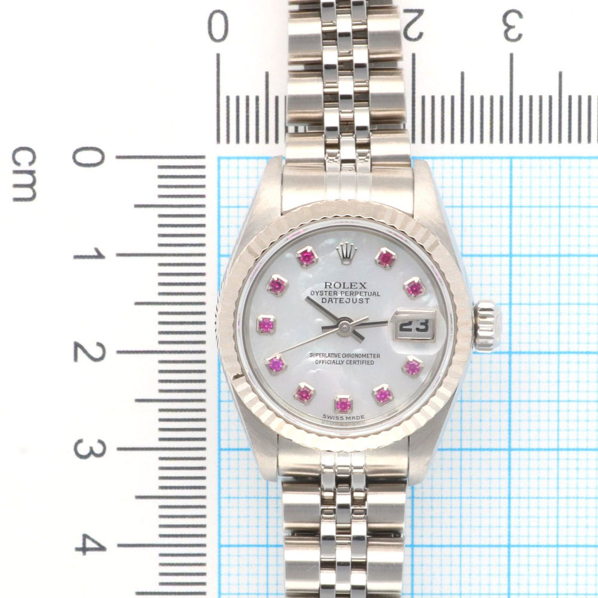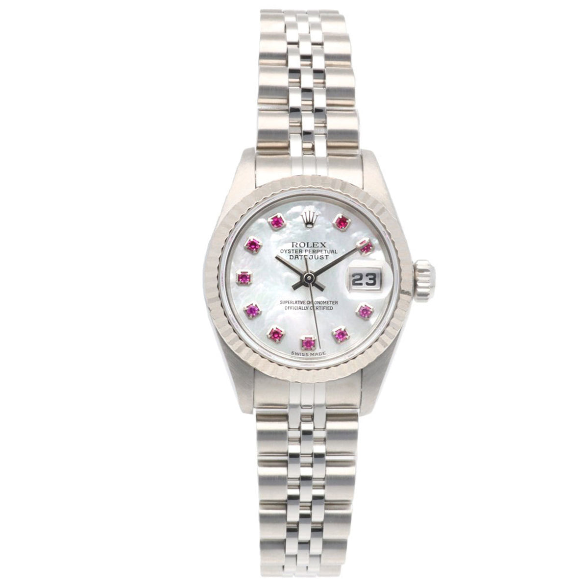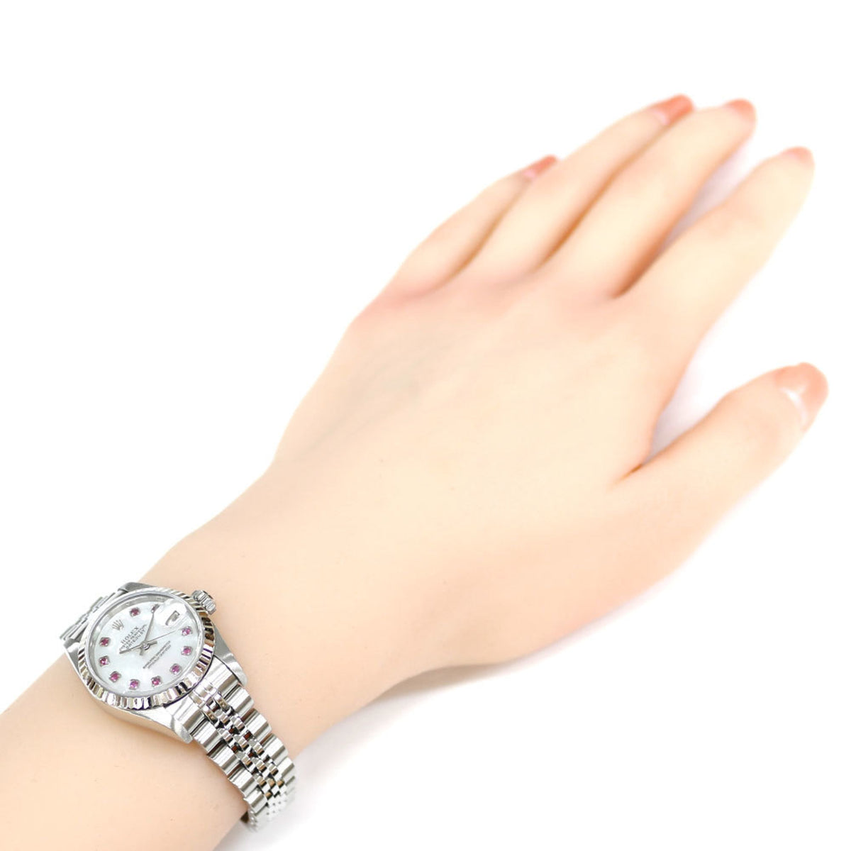 Pre-Owned Rolex Datejust Oyster Perpetual Watch, Stainless Steel, Automatic, Women's, 79174NGR, ROLEX F-Serial, 2003-2004 Model, 10 Ruby Beads, White Shell, Overhauled