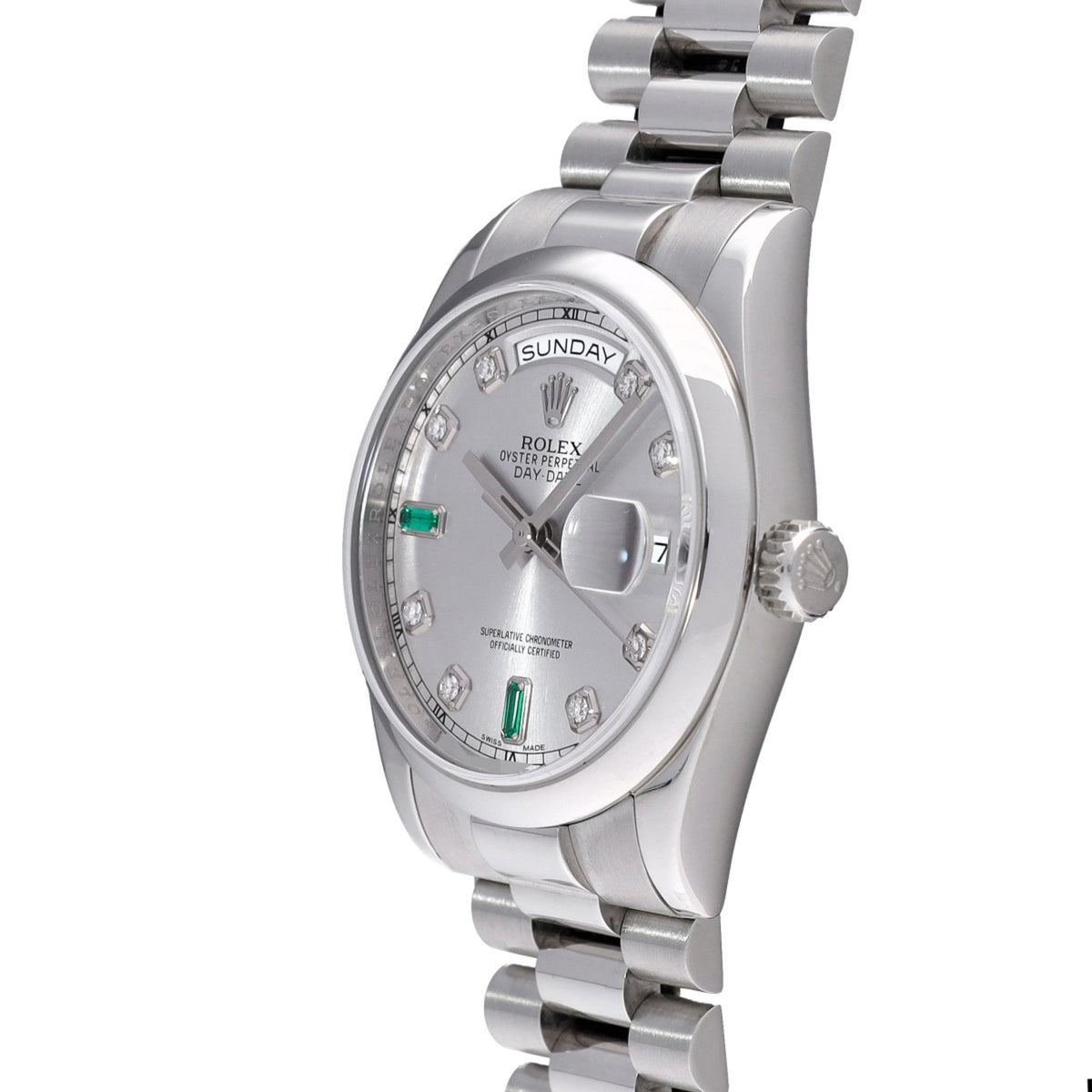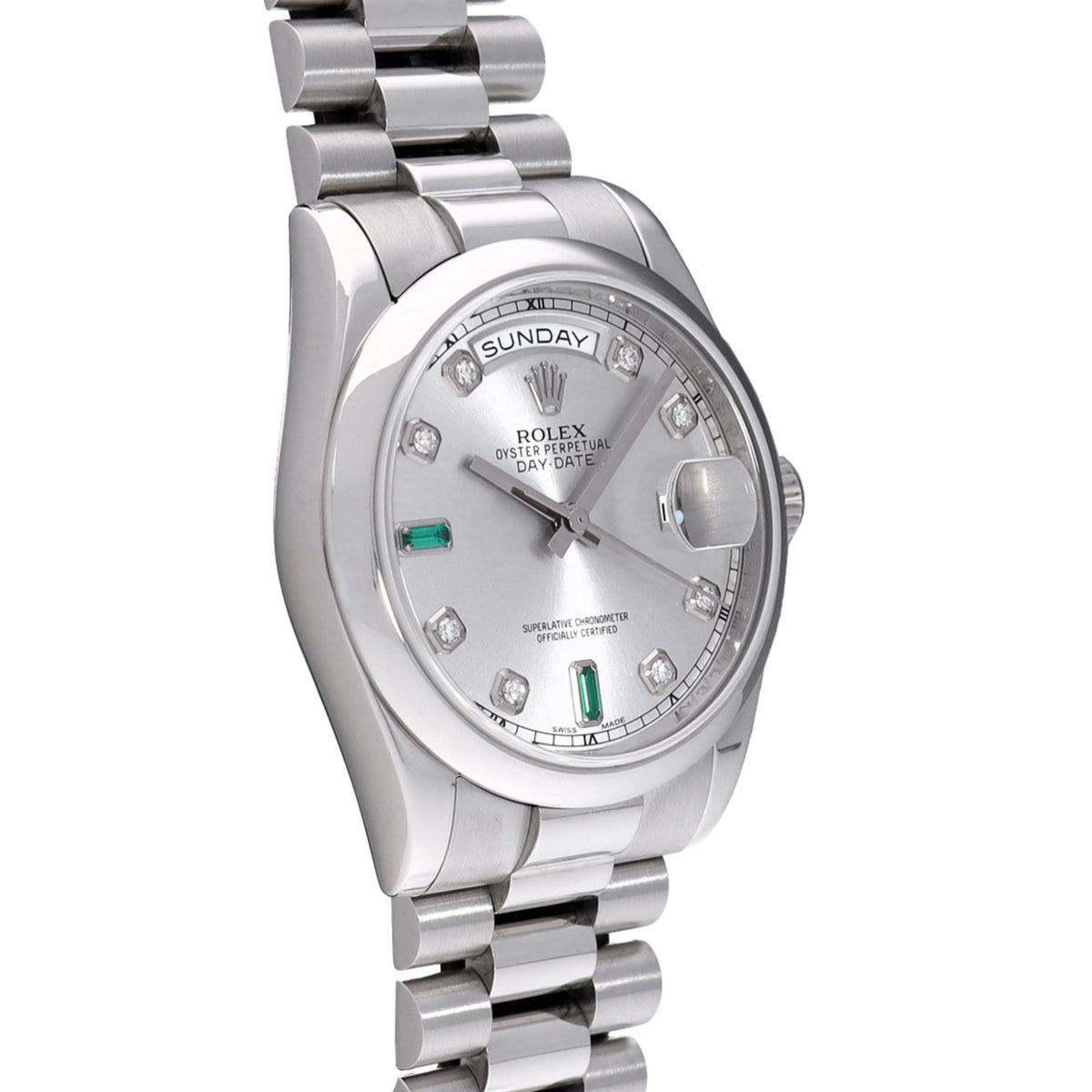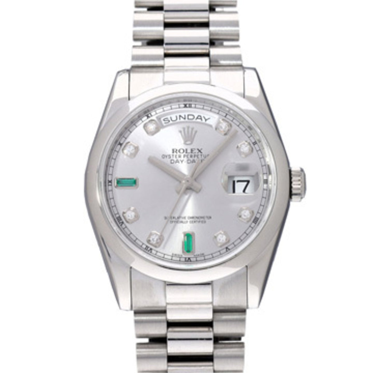 Pre-Owned Rolex Day-Date 118206A R serial number (manufactured around 1987) Silver/Diamond Men's Watch Automatic