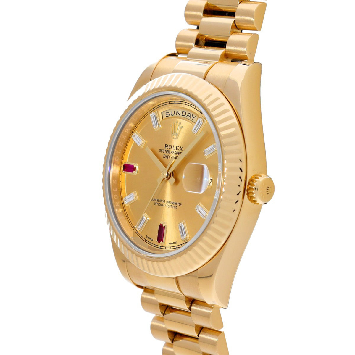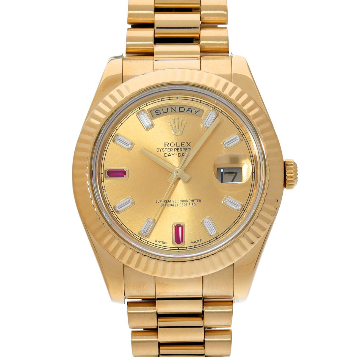 Gebrauchte Rolex Day-Date II 218238BG, zufällige Seriennummer, Champagner/Diamant/Rubin, Herrenuhr, Automatik