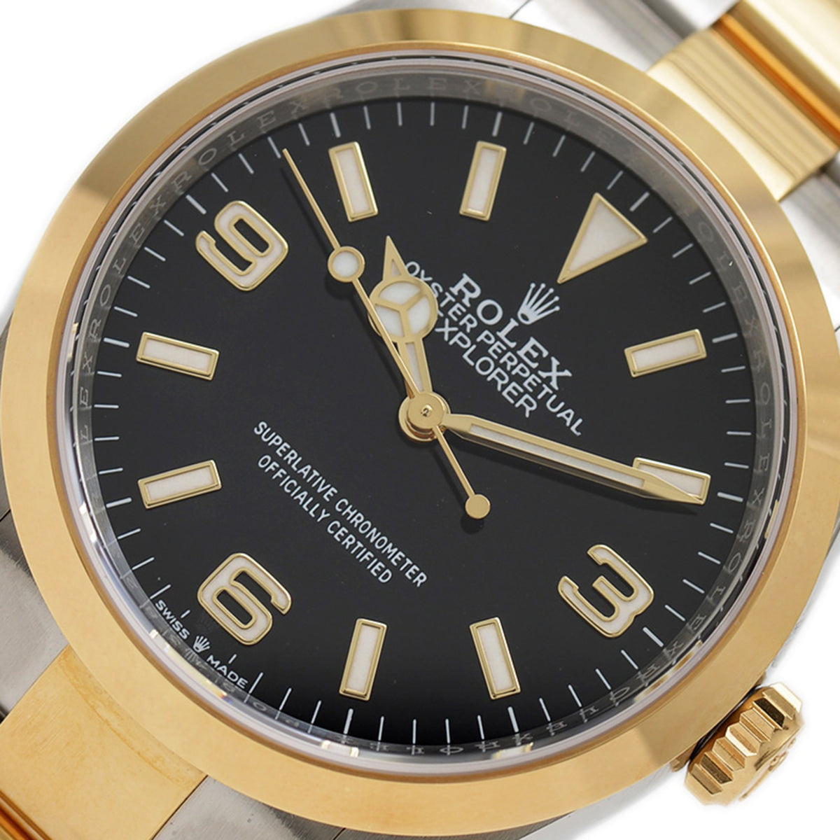 Pre-Owned Rolex Explorer 36 Watch 124273 Stainless Steel 18K Yellow Gold Two-tone Black Dial Random Serial Number
