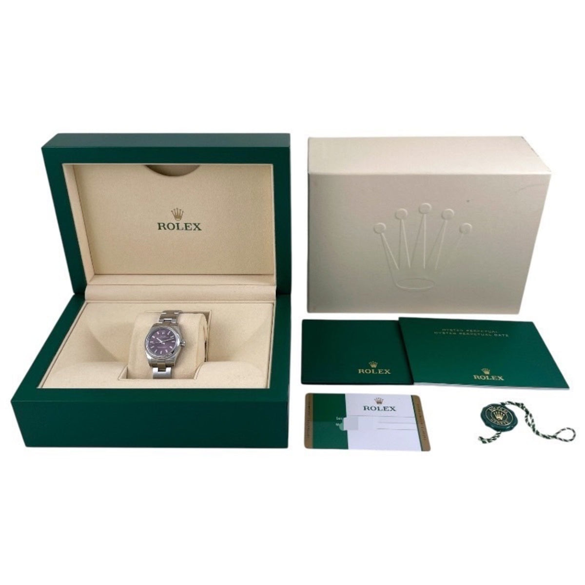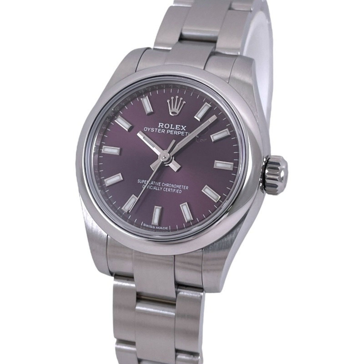 Pre-Owned ROLEX Oyster Perpetual 176200 Stainless Steel Women's Watch, Random Number, 2019 Warranty, Red Grape Dial
