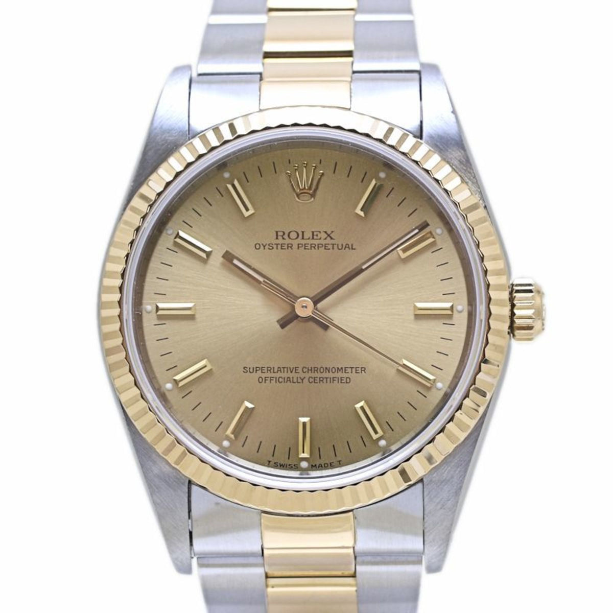 Pre-Owned ROLEX Oyster Perpetual Champagne Gold 14233 Men's Watch in 18K Yellow and Stainless Steel 40082