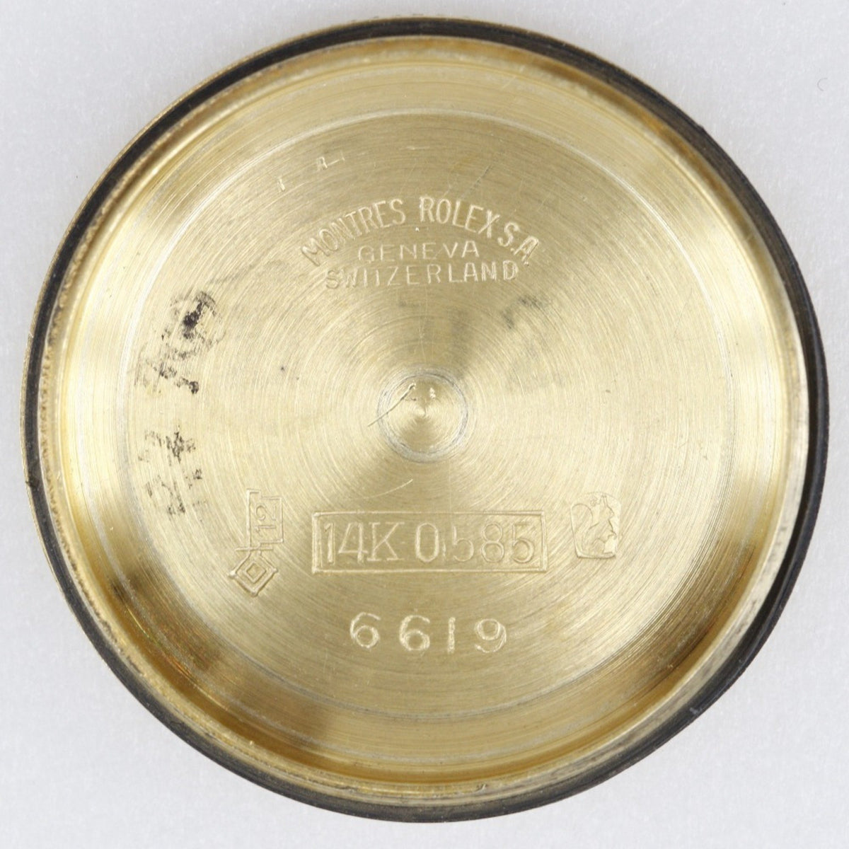 Gebrauchte Rolex Oyster Perpetual Uhr, Kaliber 1130, 6619, Gelbgold mit geprägtem Leder, 1966, Automatik, Analoganzeige, marineblaues Zifferblatt, Damen