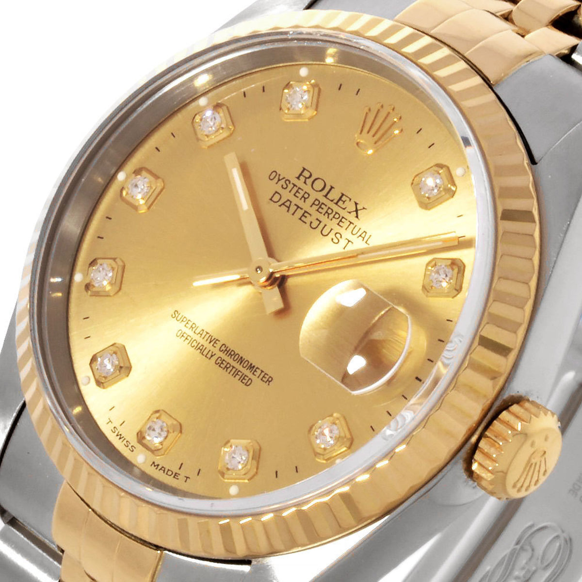 Gebrauchte Rolex ROLEX 16233G Datejust W-Nummer Uhr, Automatik, Champagner-Zifferblatt, YG x SS-Kombination, 10P Diamantindex, Herren