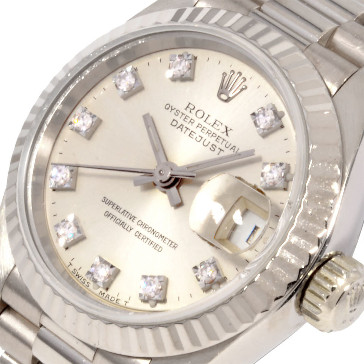 Gebrauchte Rolex ROLEX 69179G Datejust S-Serie Uhr, Automatik, silbernes Zifferblatt, massives Weißgold, 76,9 g, 10P, Diamantindex, Damen, ITF8R4Z63XTO