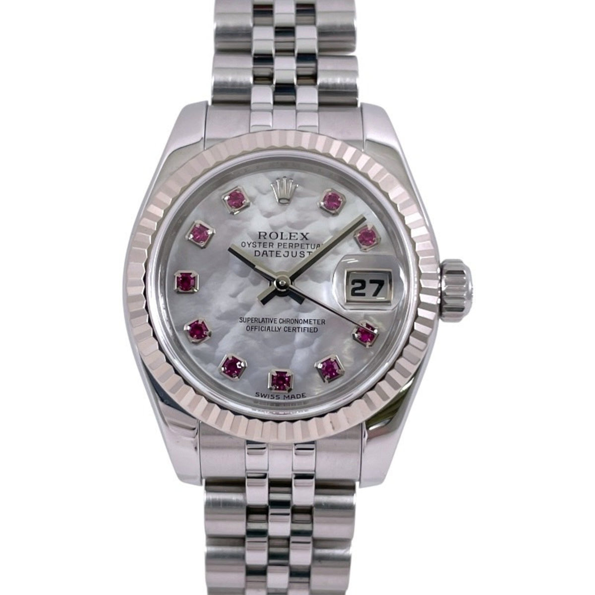 Pre-Owned ROLEX Rolex Datejust 26 179174NGR Watch, Stainless Steel, White Gold, Women's, Z Series, 2007, with Gala Shell and Ruby