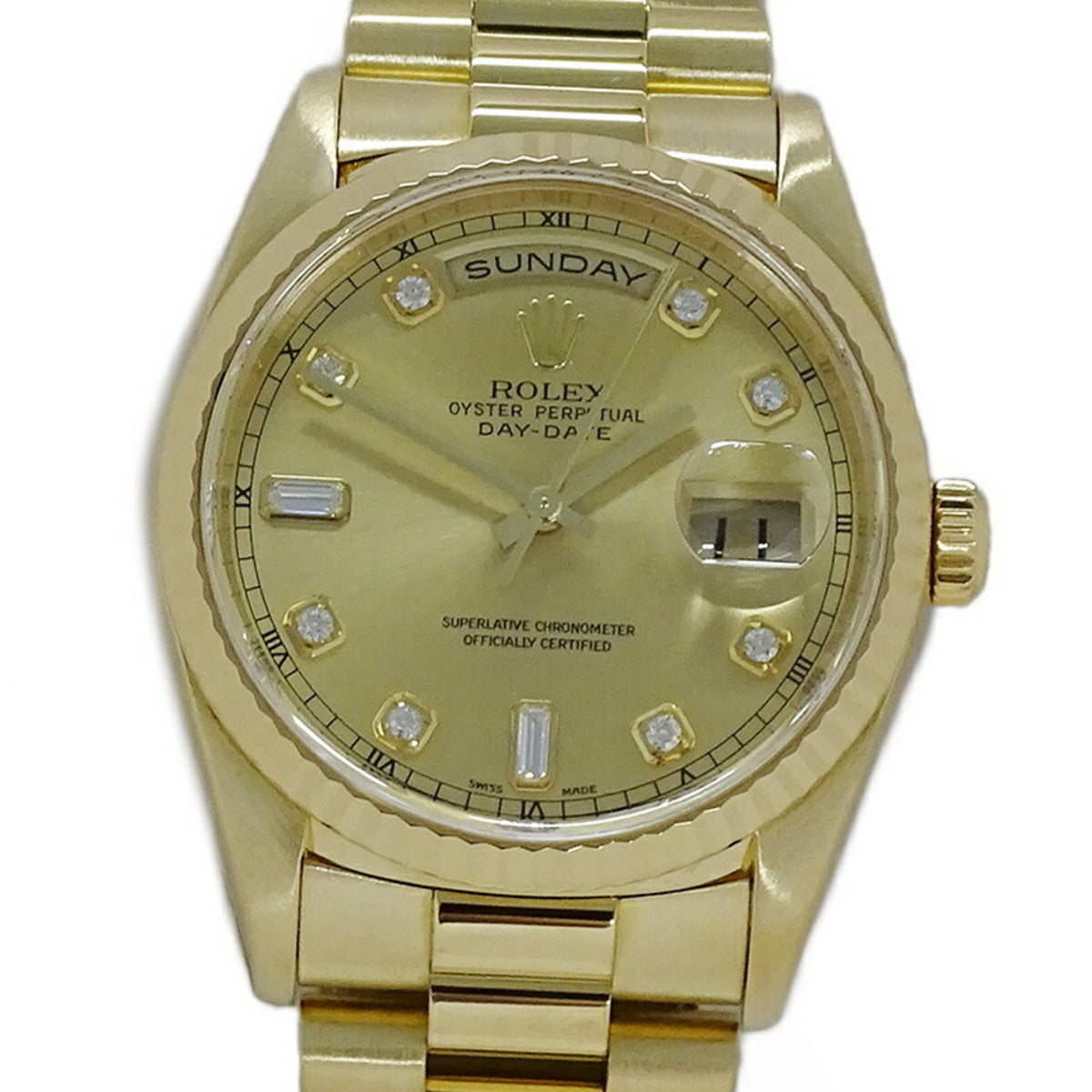 Gebrauchte Rolex ROLEX Day Date 18238A A-Serie Herrenuhr 2P Bucket 8P Diamond Automatic AT 750YG 18K Massivgold Überholt und Poliert