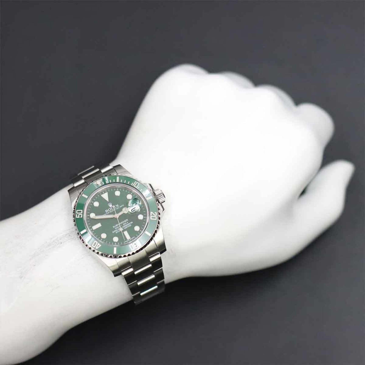 Gebrauchte Rolex Submariner Date 116610LV Herrenuhr mit Zufallszahlen-Roulette, grünes Lünettenzifferblatt, automatischer Selbstaufzug