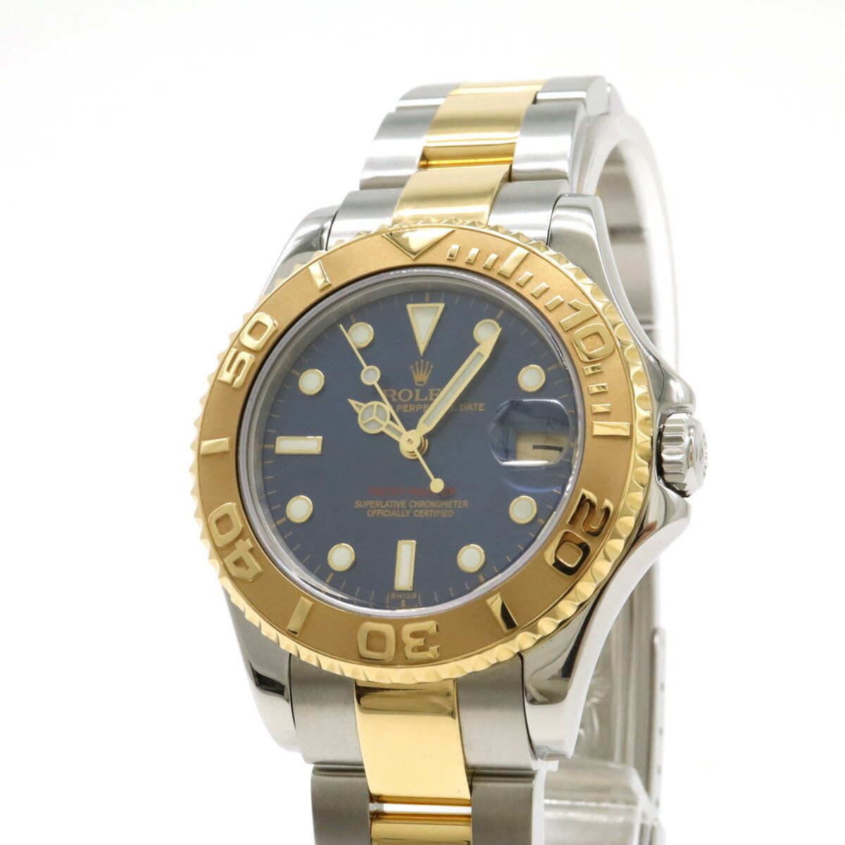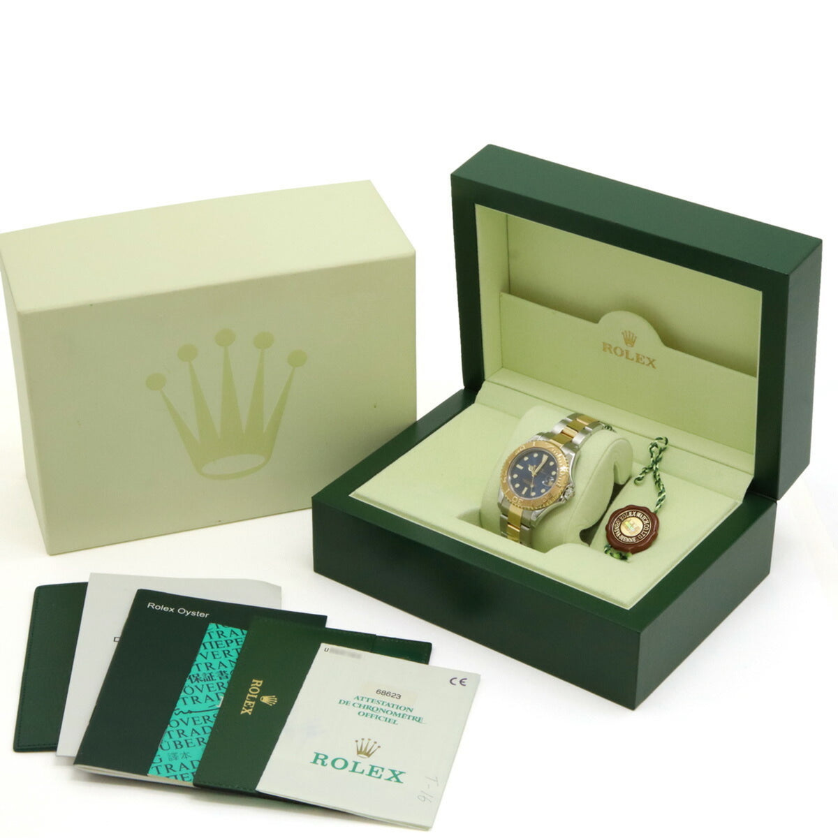 Gebrauchte ROLEX Rolex Yachtmaster Rolesium Blaues Zifferblatt Datum SS Platin Lünette U-Nummer Jungen AT Automatische Armbanduhr 68623