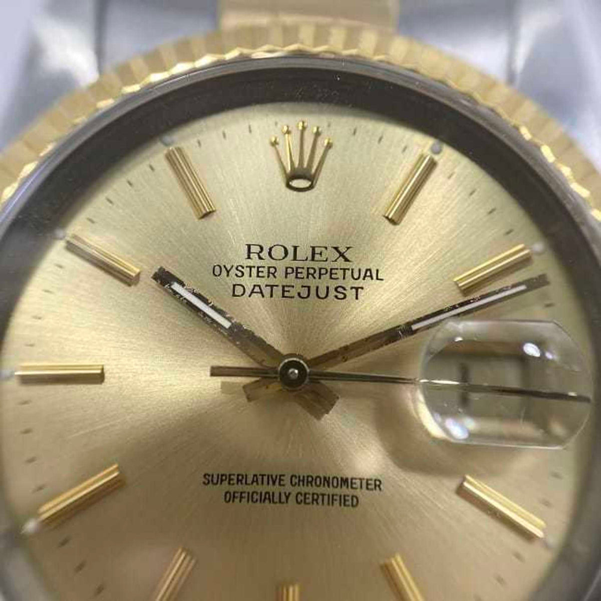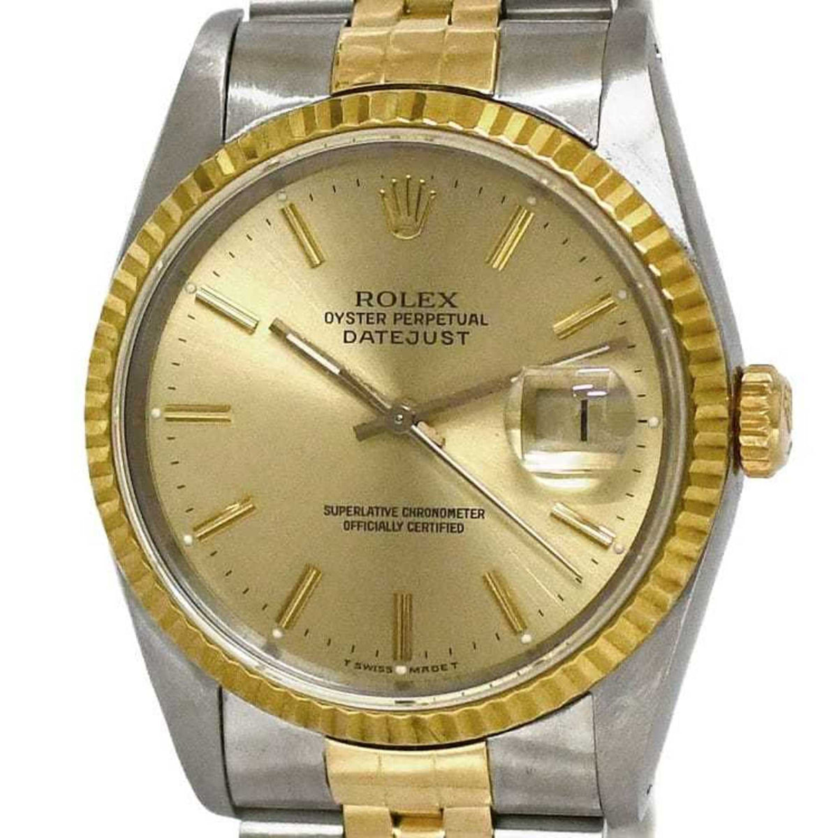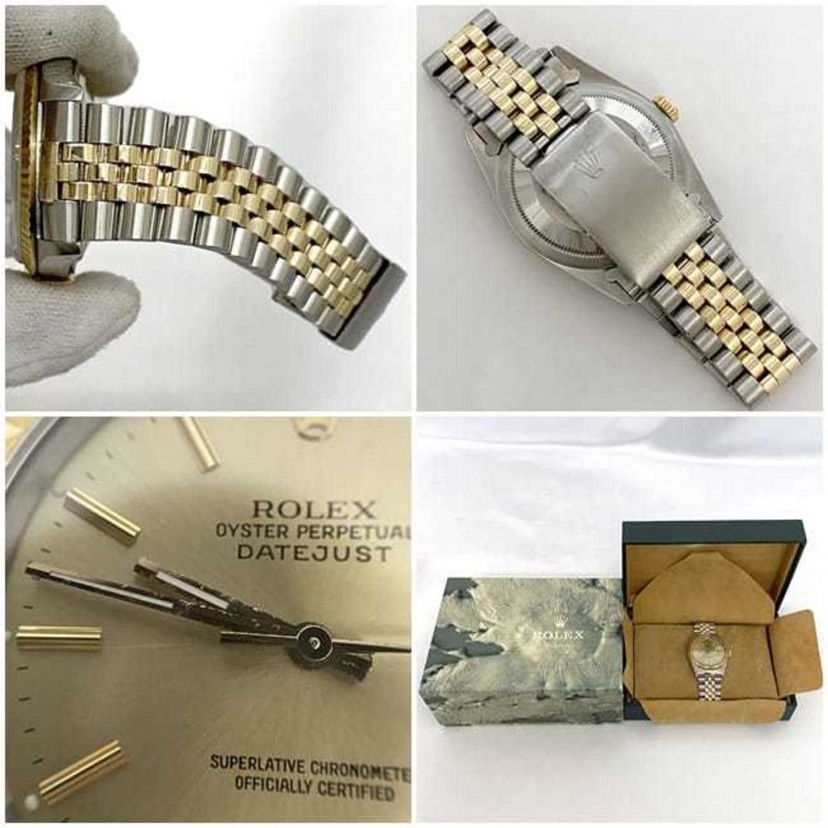Gebrauchte Rolex-Uhr Datejust f-22250 Combi 16233, überholt, poliert, SS 750, Automatik, L-Nummer, Herren, goldenes Zifferblatt, Luxus