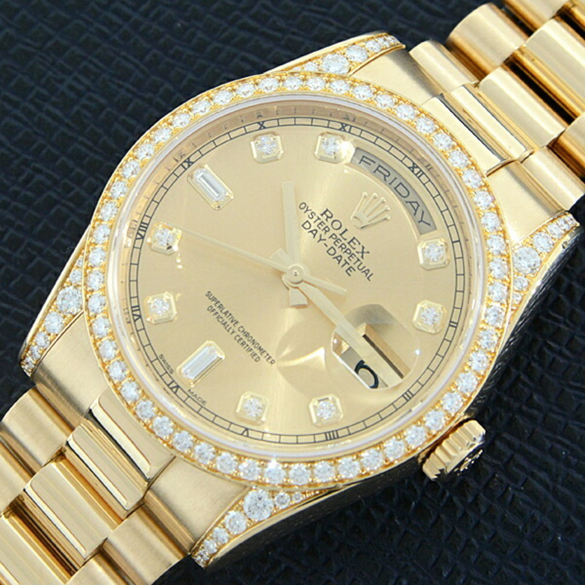Gebrauchte Rolex Uhr Herren Day-Date 36 Diamant Lünette, Lug Diamonds, 8P 2P Bucket Automatic, Random, Goldenes Zifferblatt, 750YG, ROLEX 118388A