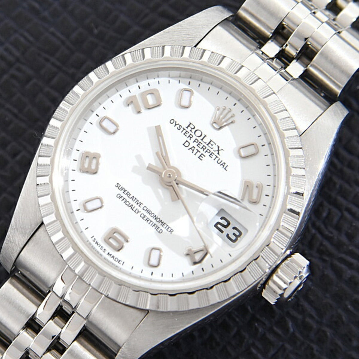 Gebrauchte Rolex Uhr Damen Oyster Perpetual Date Automatik D Serie weißes Zifferblatt Edelstahl SS ROLEX 79240