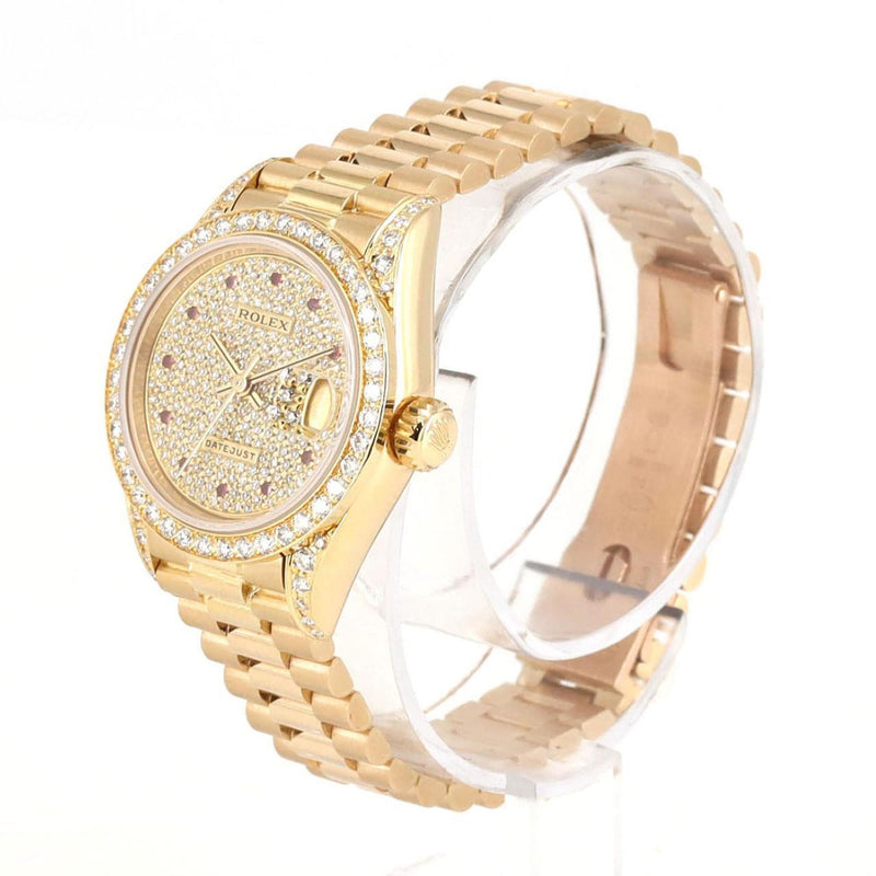Gebrauchte Rolex 69158G Datejust 10P Lünette Diamant Uhr K18 Gelbgold K18YG Damen ROLEX
