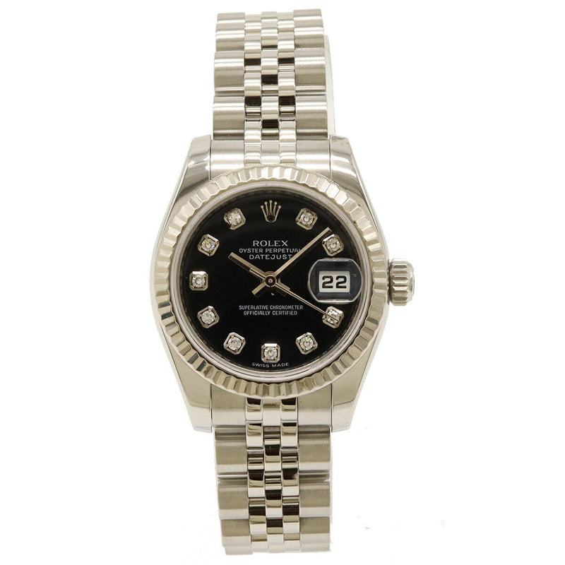 Gebrauchte ROLEX Rolex Datejust Roulette Zufallsproduktnummer Schwarzes Zifferblatt K18WG SS 10P Diamant Damen Automatikuhr 179174G