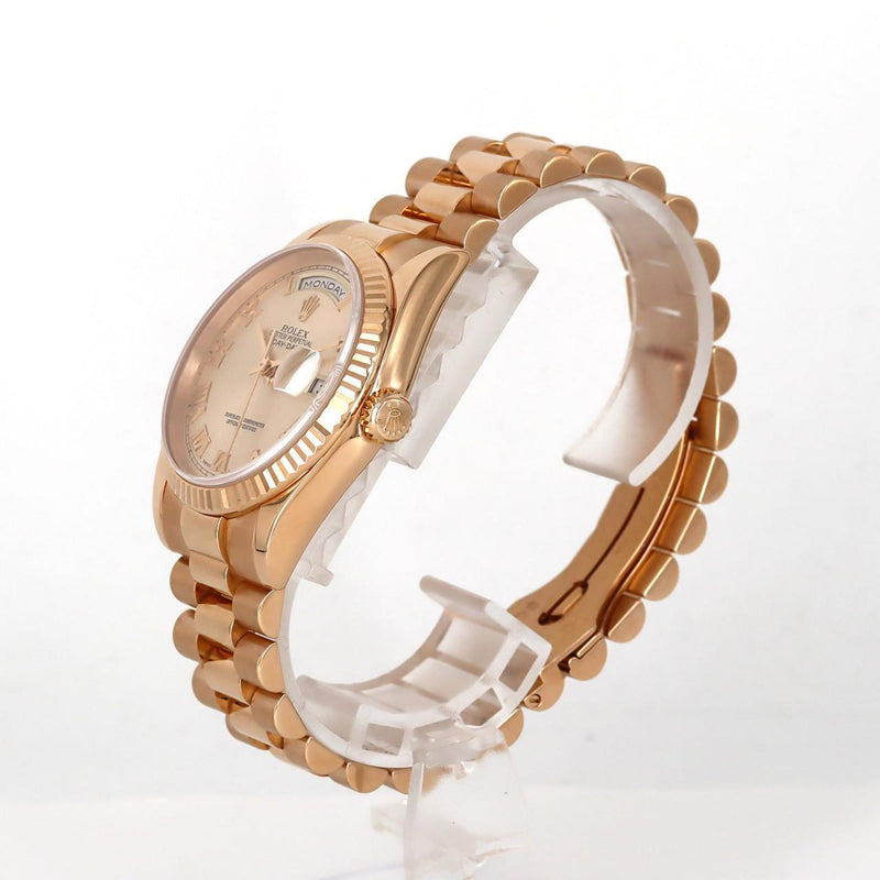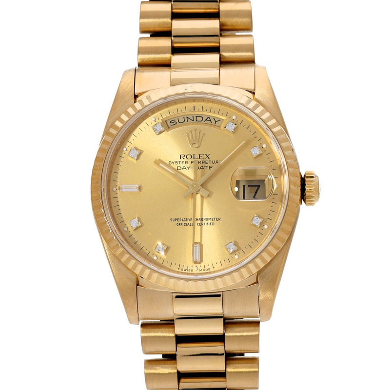 Gebrauchte Rolex Uhr Herren Day-Date 36 Diamant Lünette, Lug Diamonds, 8P 2P Bucket Automatic, Random, Goldenes Zifferblatt, 750YG, ROLEX 118388A