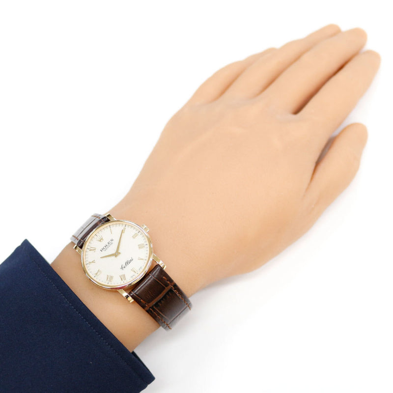 Pre-Owned ROLEX Cellini 4082 18K Gold Leather Hand-Winding Ladies Watch