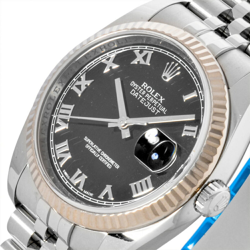 Pre-Owned Rolex ROLEX 116234 Datejust Automatic Watch Black Dial WG x SS Roman Index Men's