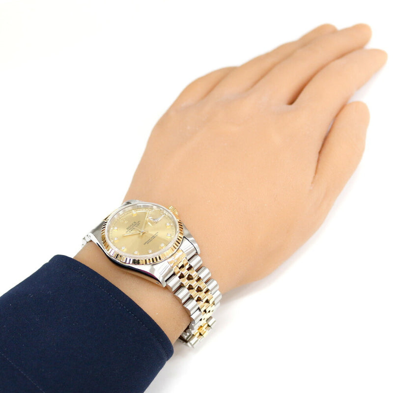 Pre-Owned Rolex Datejust Oyster Perpetual Watch Stainless Steel 16233G Automatic Overhauled and Repolished X-Number Men's ROLEX 10P Diamond