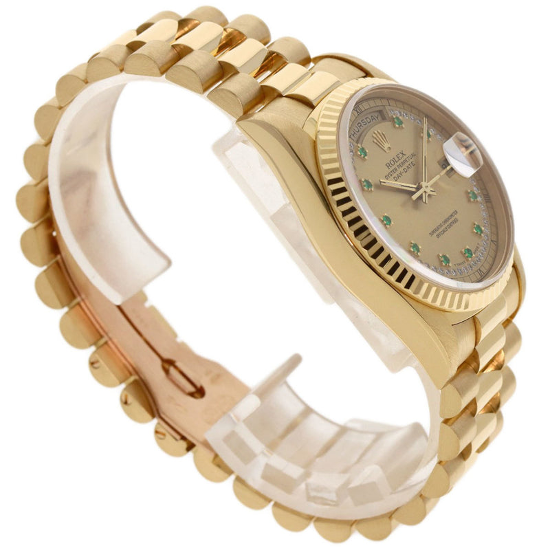 Pre-Owned Rolex 18238LE Day-Date Emerald and Diamond Watch in 18K Yellow Gold (18KYG) Men's
