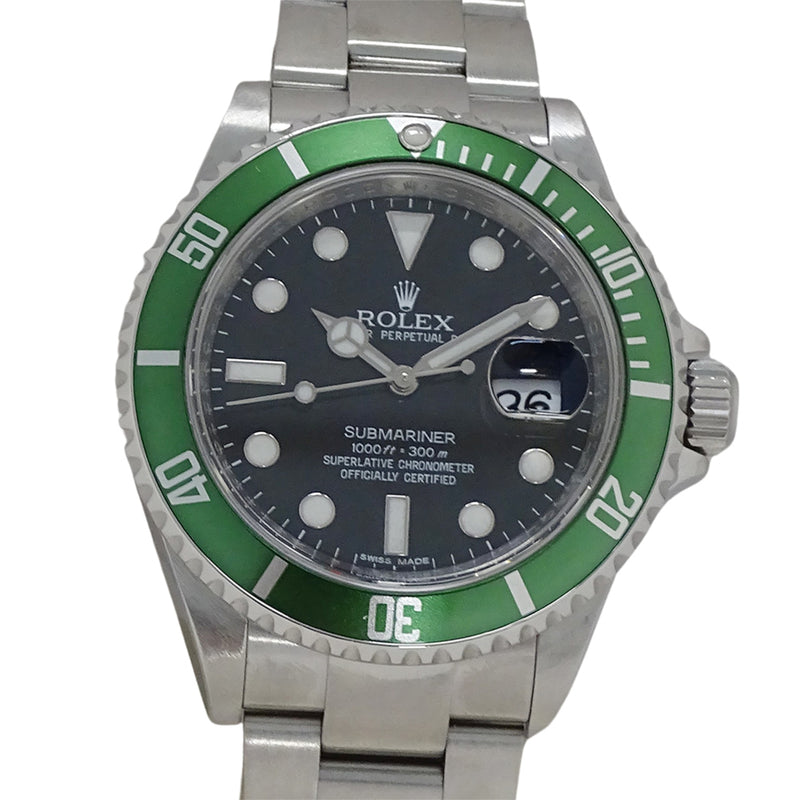 Pre-Owned Rolex Submariner Date 16610LV G-Serial Men's Automatic Watch with Stainless Steel Finish, Green Roulette, Polished