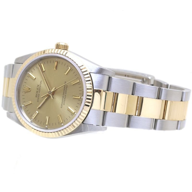 Pre-Owned ROLEX Oyster Perpetual Champagne Gold 14233 Men's Watch in 18K Yellow and Stainless Steel 40082