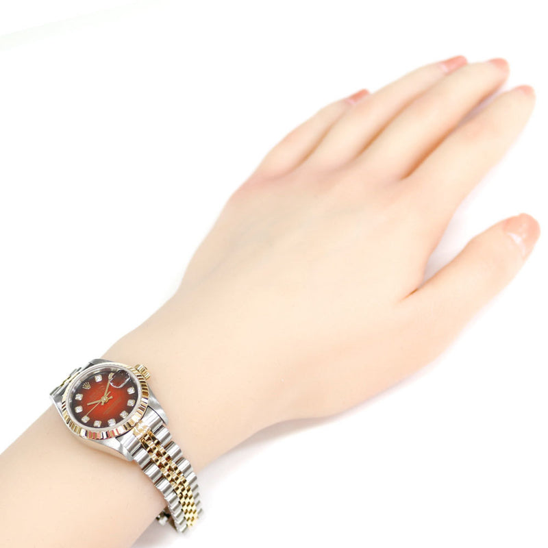 Pre-Owned Rolex Datejust Oyster Perpetual Watch, Stainless Steel 69173G Automatic Women's ROLEX T-Serial, 1996 Model, Red Gradient, 10 Diamonds
