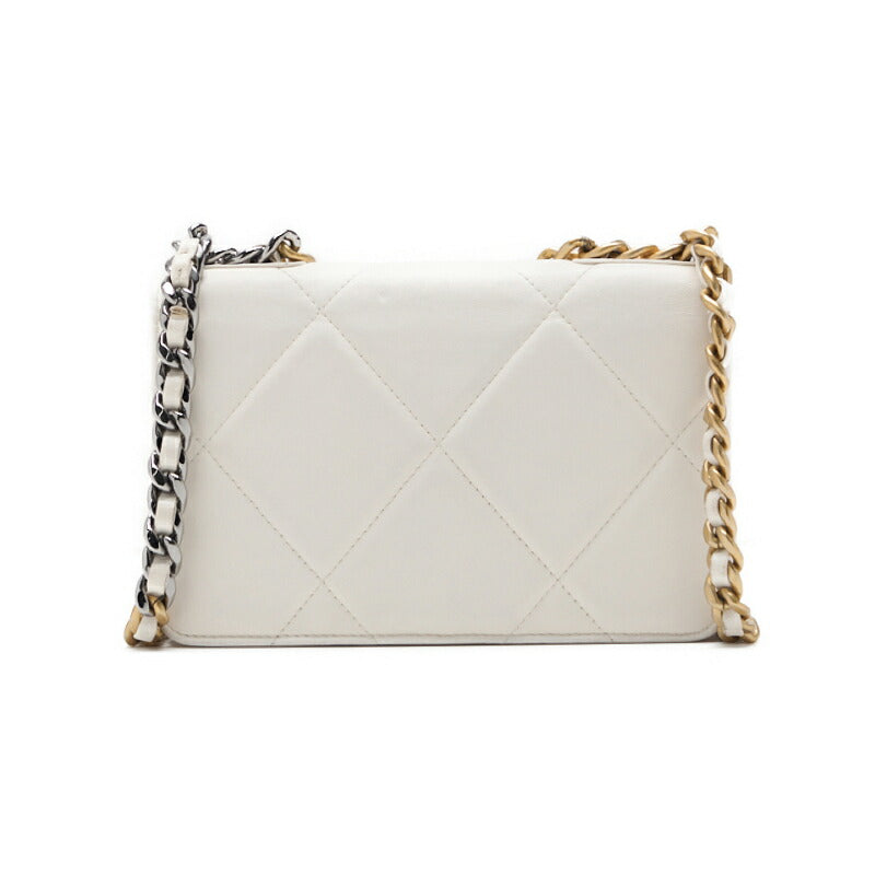 Entdecken Sie die Eleganz der CHANEL 19 Matelassé Chain Wallet , ein atemberaubendes Accessoire, das Stil und Funktionalität perfekt vereint. Gefertigt aus luxuriösem Lammleder besticht diese Geldbörse durch ihr makelloses Weiß mit exquisiten Gold- und Silberbeschlägen und ist damit ein Statement für jede anspruchsvolle Frau.