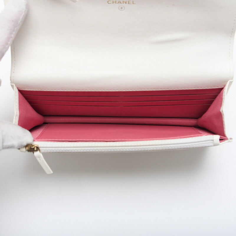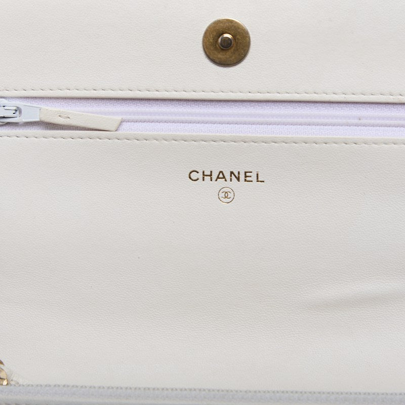 Pre-Owned Chain Wallet Matelassé Lammleder Weiß Goldfarbene Hardware Pre-Owned