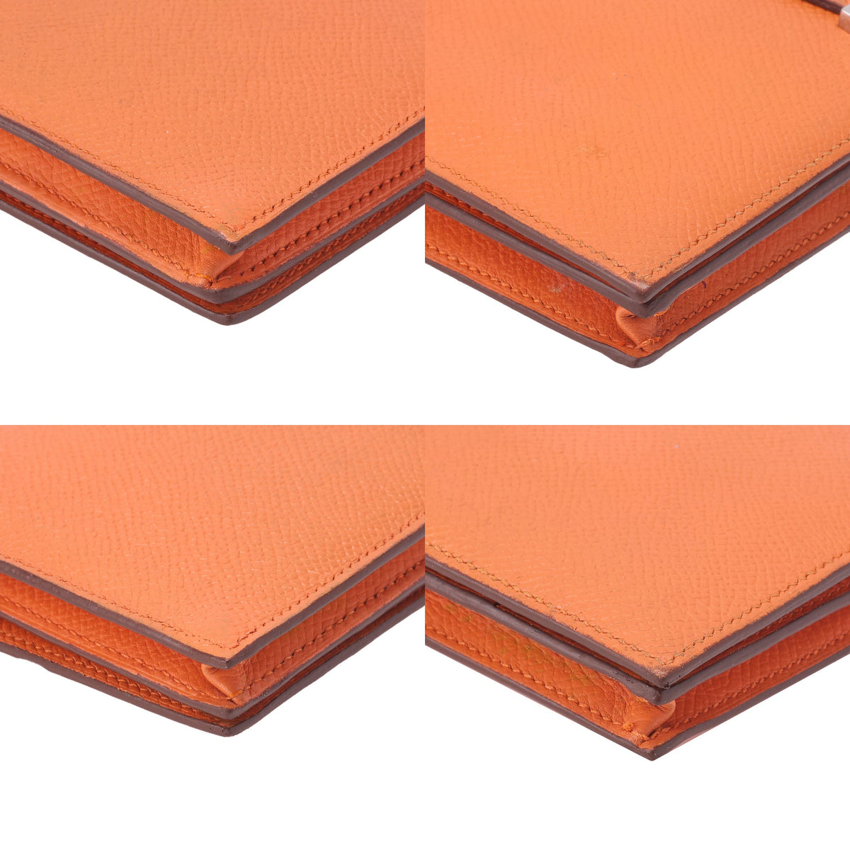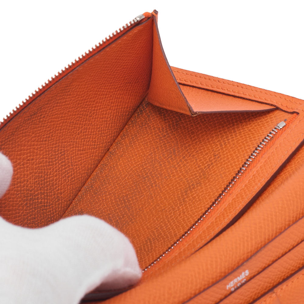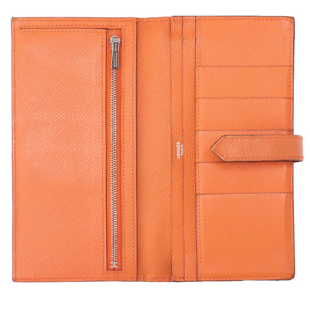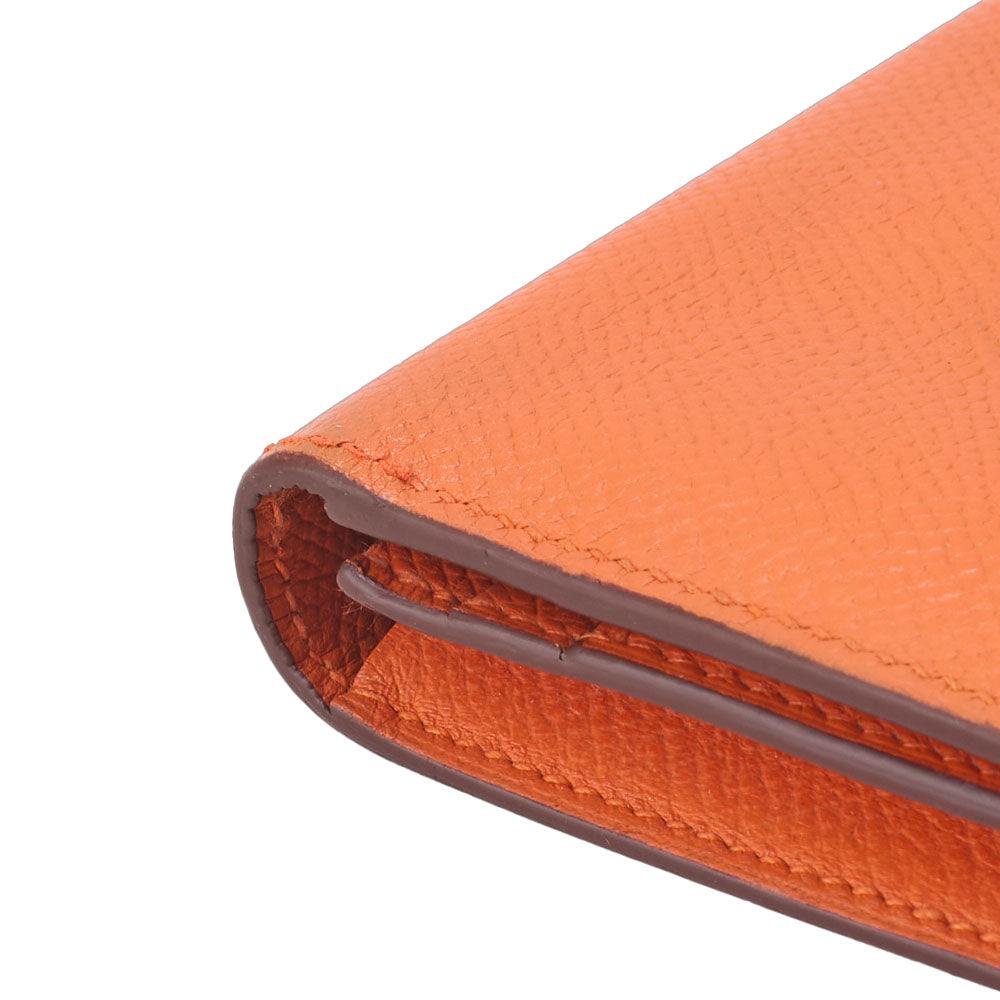 Wir präsentieren die HERMES Hermes Bearn Soufflet Zweifach-Langbrieftasche , eine exquisite Kombination aus Stil und Funktionalität, gefertigt aus hochwertigem Epson-Leder in einem atemberaubenden Orangeton. Diese elegante Damenbrieftasche setzt ein Statement und bietet gleichzeitig die perfekte Aufbewahrungslösung für Ihre wichtigsten Dinge.