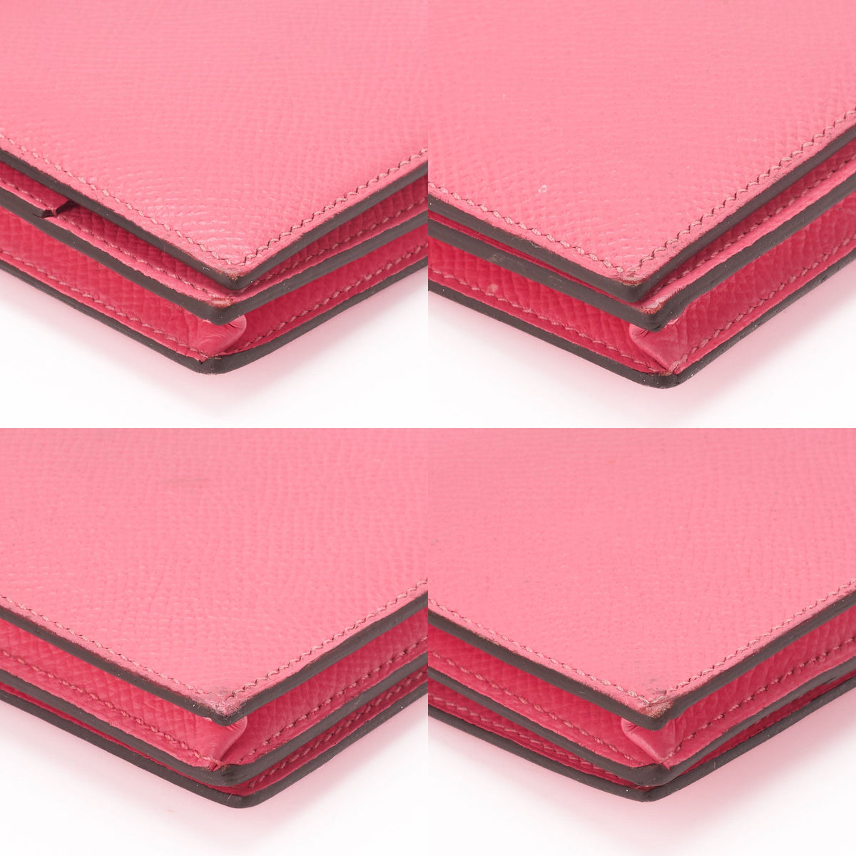Wir präsentieren die HERMES Hermes Bearn Soufflet Zweifach-Geldbörse in der exquisiten Farbe Rose Azalee – eine perfekte Kombination aus Eleganz und Funktionalität. Diese luxuriöse Damenbrieftasche ist aus hochwertigem Epson-Material gefertigt und bietet sowohl Langlebigkeit als auch ein angenehmes, weiches Tragegefühl.