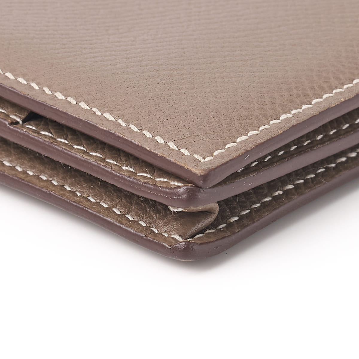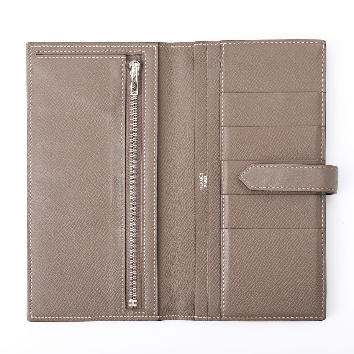 Gönnen Sie sich zeitlose Eleganz mit der HERMES Bearn Soufflet Zweifach-Langbrieftasche in Vaux Epson Etoupe Grau. Diese exquisite Damenbrieftasche vereint Luxus und Funktionalität und ist das perfekte Accessoire für die moderne Frau.