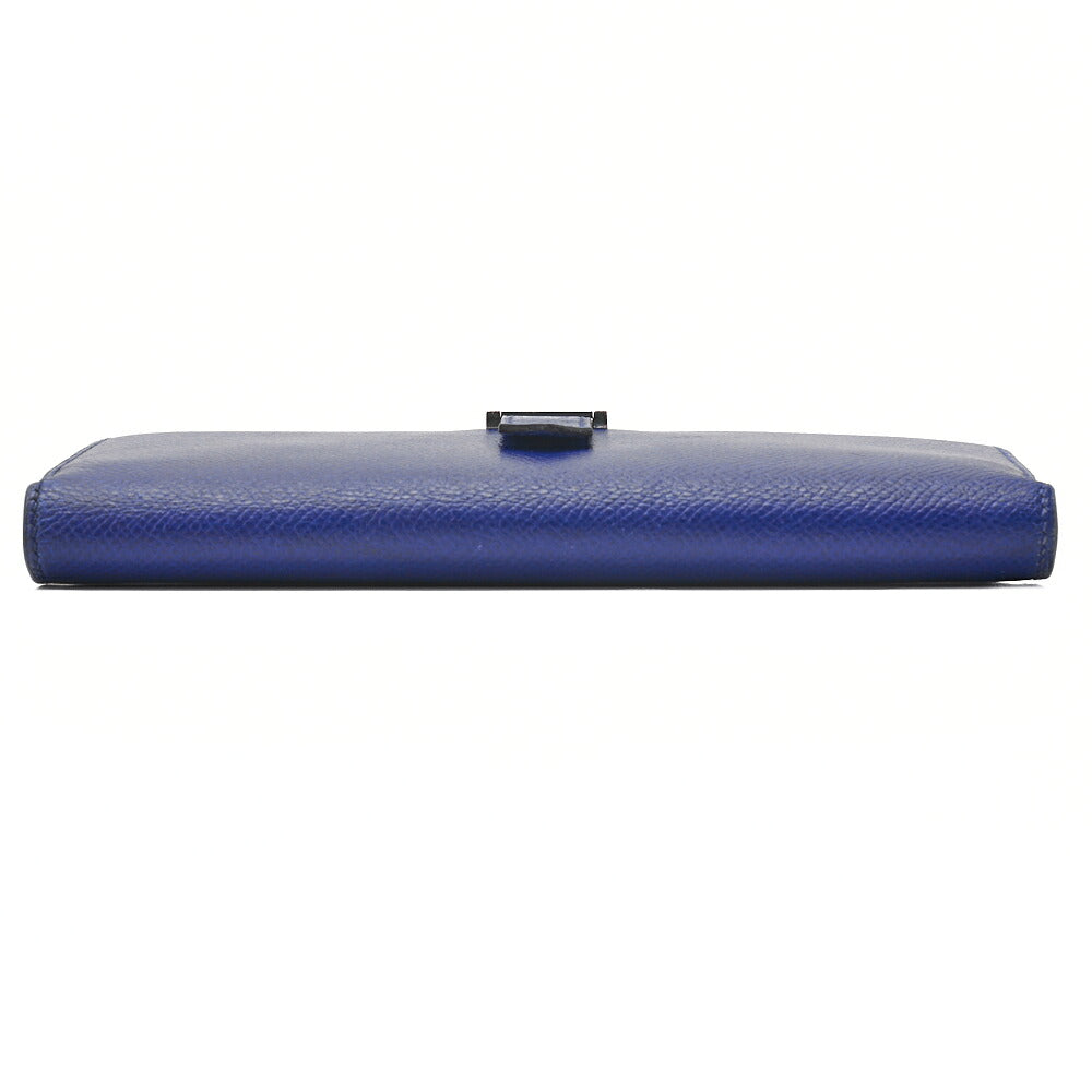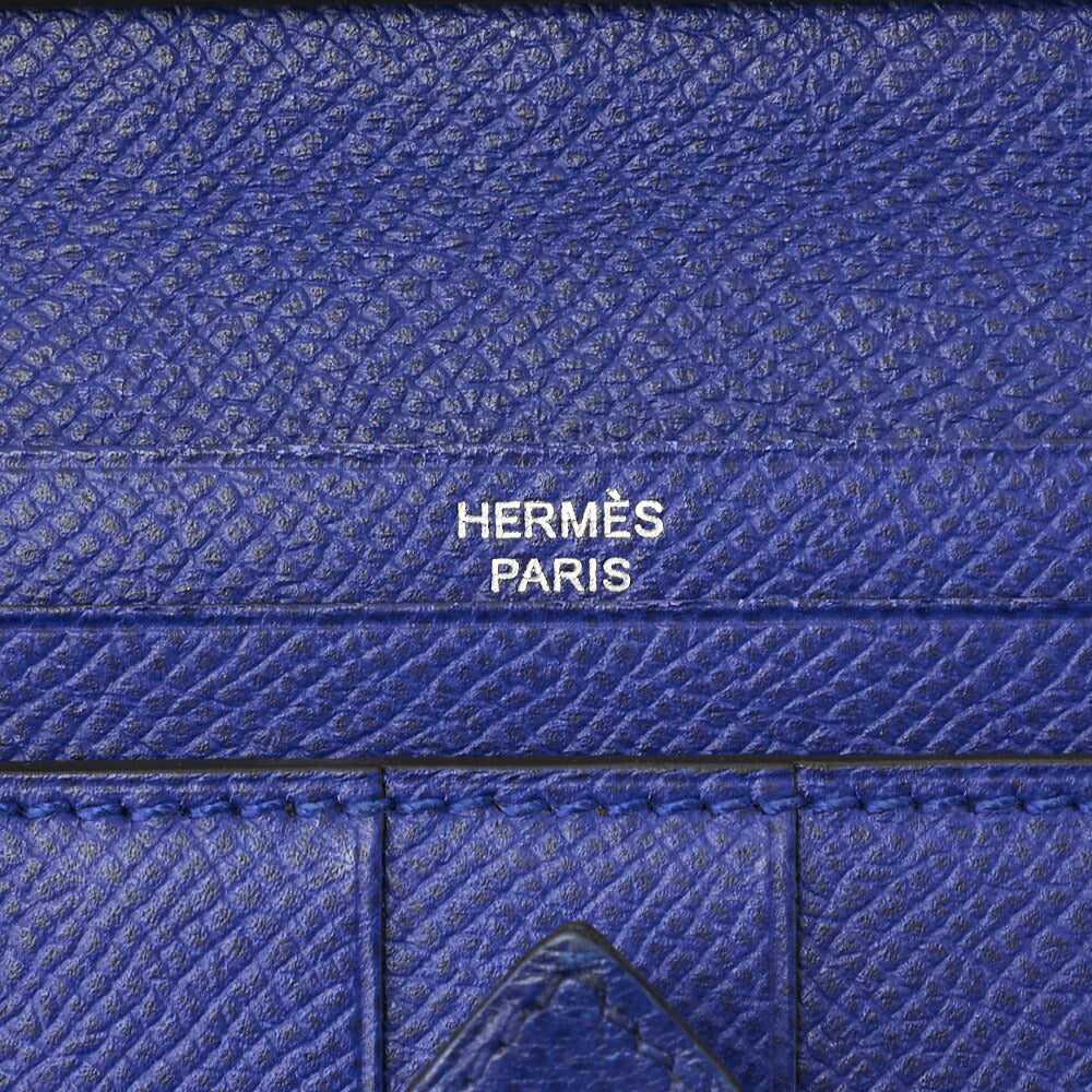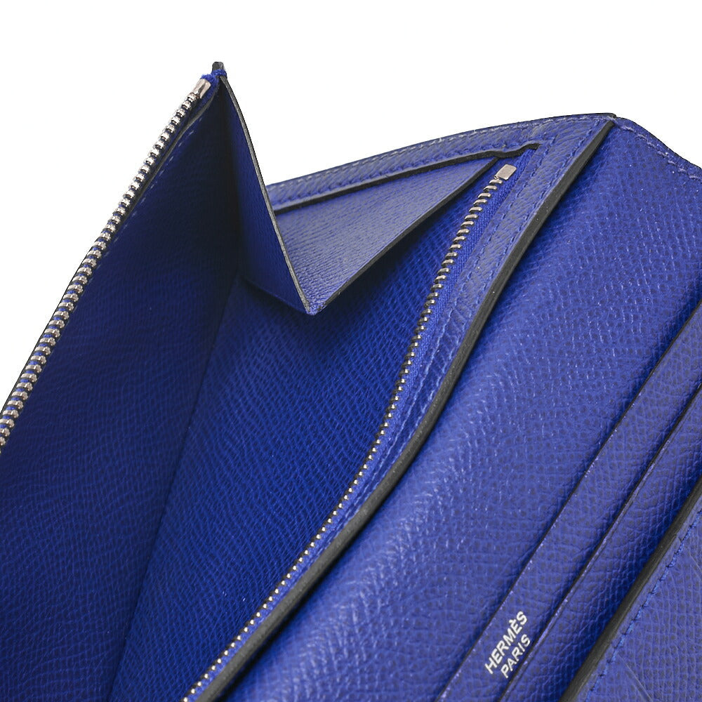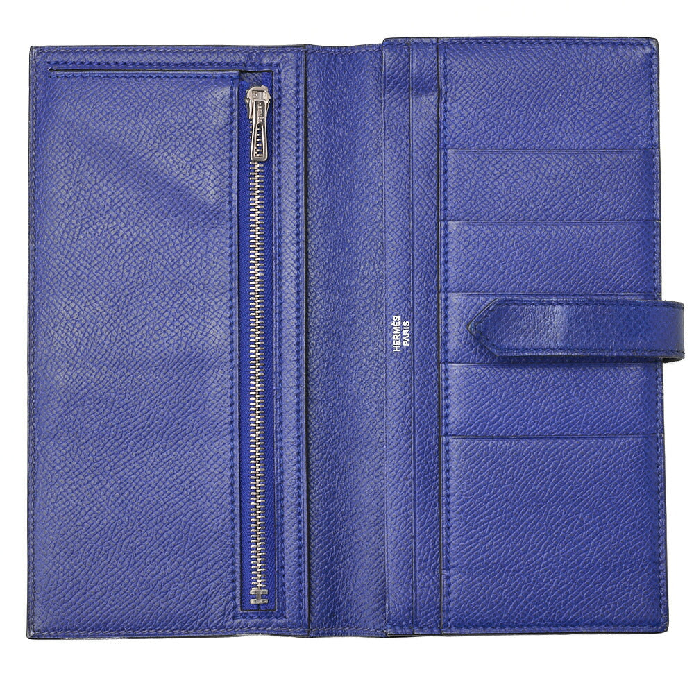 Wir präsentieren die exquisite HERMES Bearn Soufflet Bi-fold Long Wallet , ein luxuriöses Accessoire für die moderne Frau. Gefertigt aus hochwertigem Epson-Material, ist diese atemberaubende Geldbörse in Electric Blue perfekt mit eleganten Goldbeschlägen kombiniert und setzt damit ein Highlight unter den langen Damengeldbörsen. Mit den Maßen ca. 17,5 cm (B) x 9 cm (H ) passt sie bequem in Ihre Handtasche und bietet gleichzeitig ausreichend Stauraum für Ihre wichtigsten Dinge.