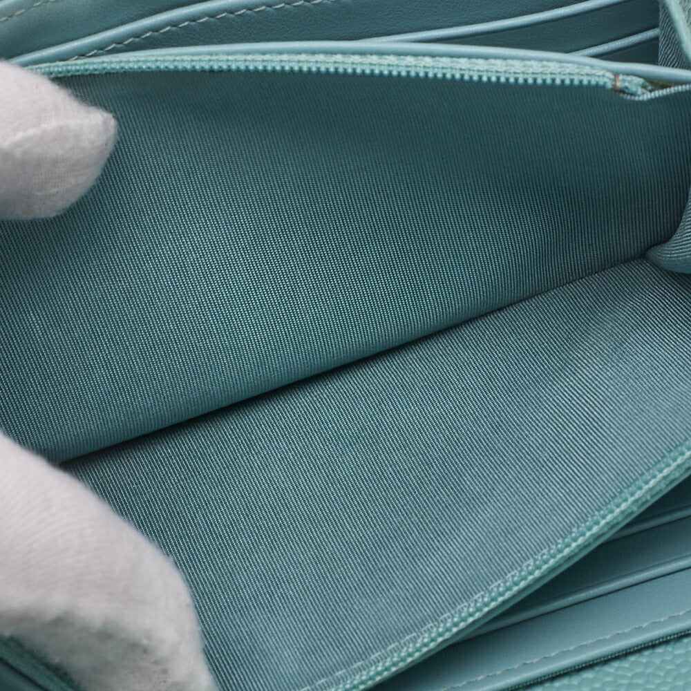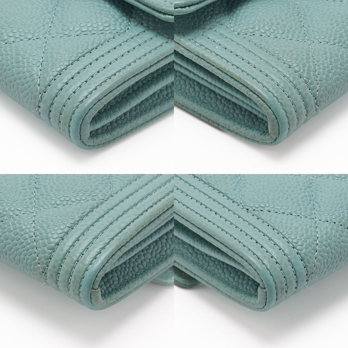 Pre-Owned Boy Matelassé Bi-Fold Long Wallet Caviar Skin Mintgrün Goldfarbene Hardware Pre-Owned