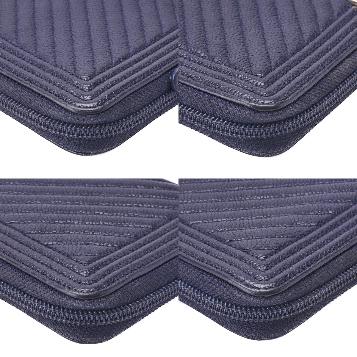 Gebrauchte Boy V-Stitch Runde Lange Geldbörse, Kaviarhaut, Marineblau, Goldfarbene Metallteile, Gebraucht