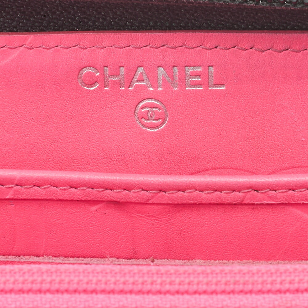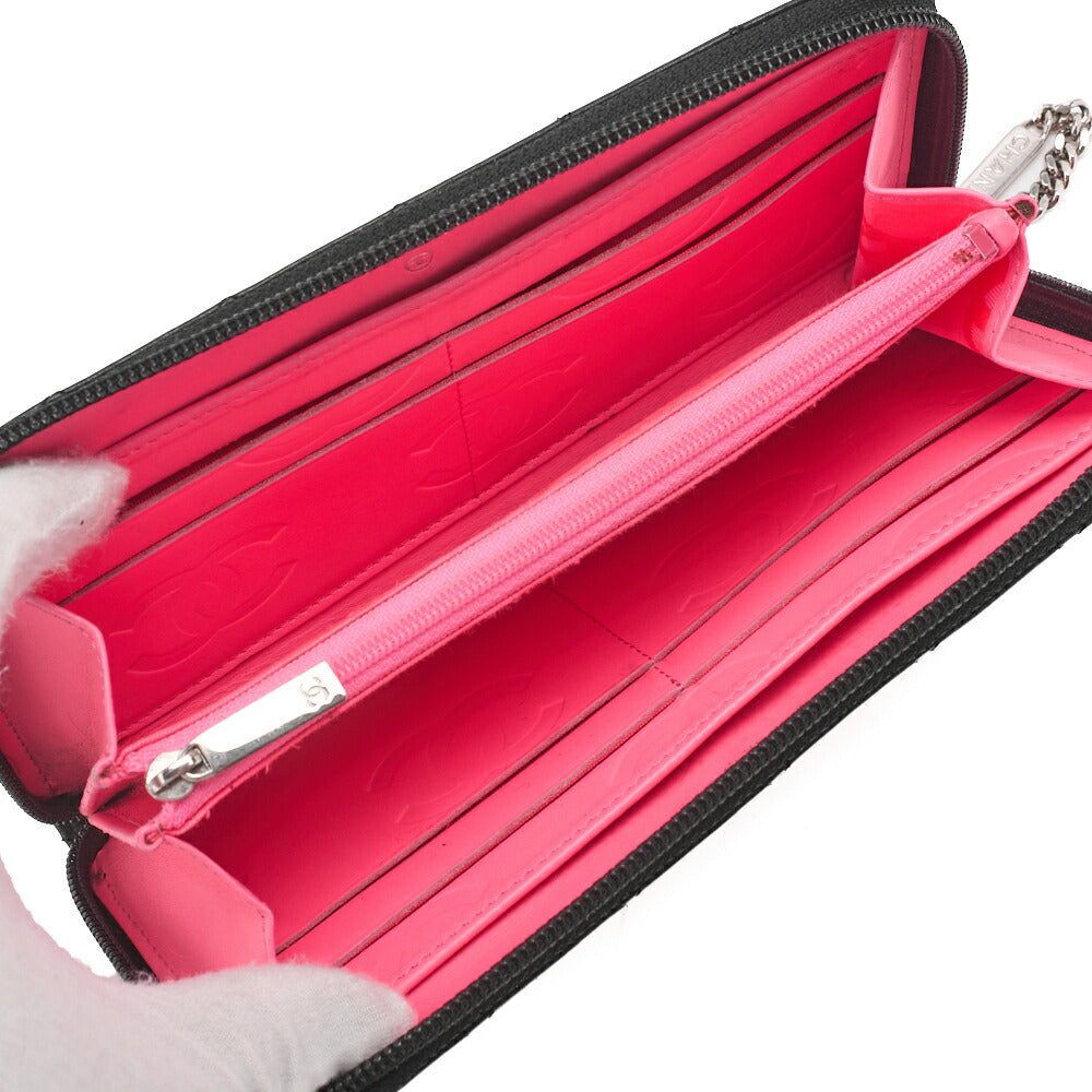 Erweitern Sie Ihre Accessoire-Auswahl mit der CHANEL Cambon Line Matelasse Round Long Wallet – einer atemberaubenden Kombination aus Eleganz und Funktionalität. Gefertigt aus hochwertigem Kalbsleder in edlem Schwarz, besticht diese luxuriöse Geldbörse mit exquisiten Silberbeschlägen und ist somit das perfekte Accessoire für jeden Anlass.