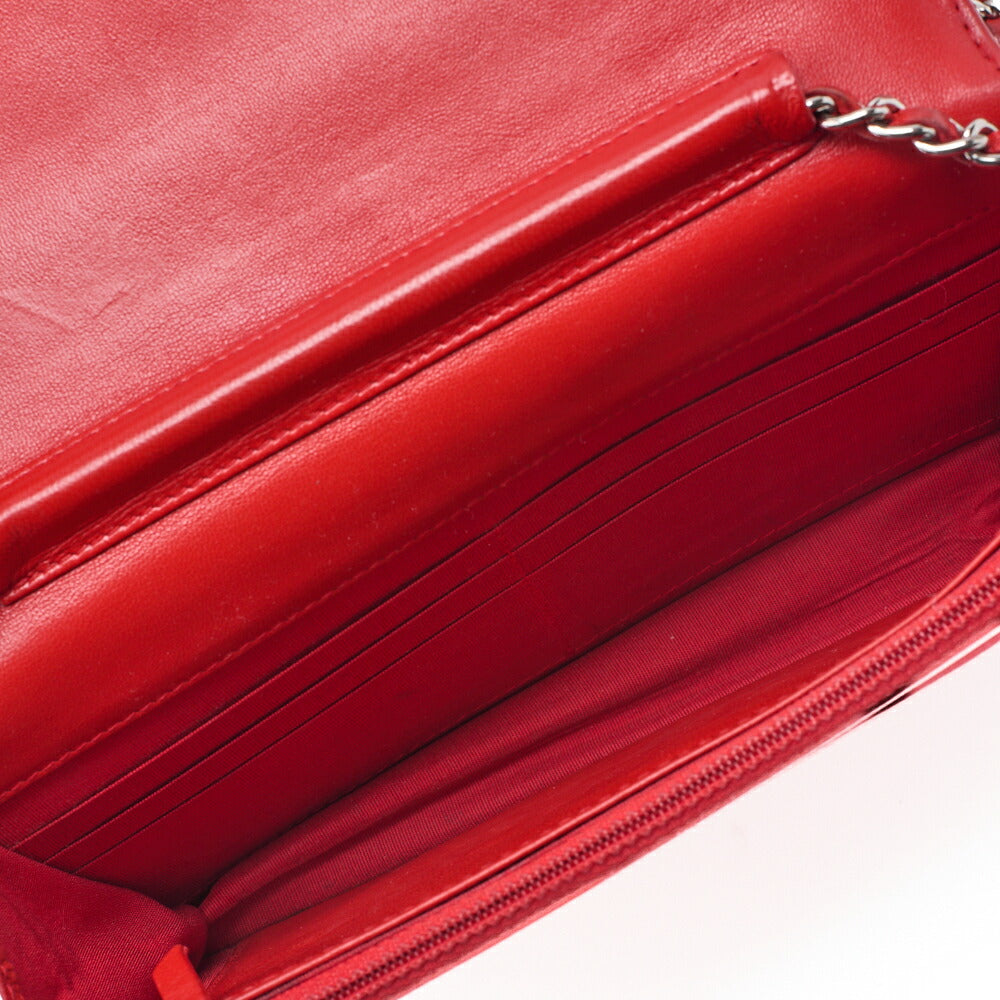 Pre-Owned Chain Shoulder Bag Matelassé Cocomark Chain Wallet Red Silver-Tone Hardware, Pre-Owned