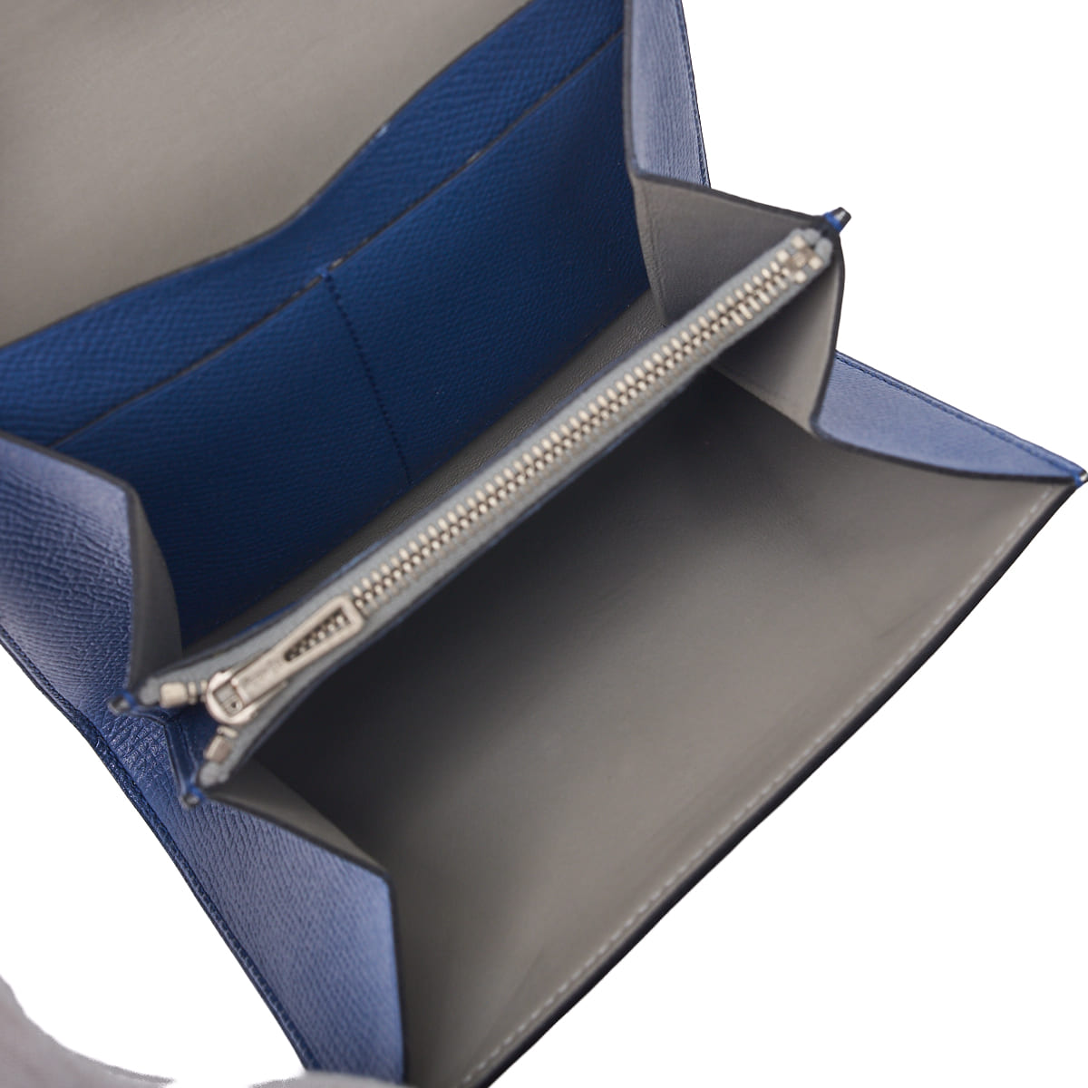 Veredeln Sie Ihren Stil mit der HERMES Constance Compact Two-Fold Wallet in der atemberaubenden Farbe Epson Blue Izmir. Diese exquisite Damenbrieftasche vereint luxuriöses Design mit praktischer Funktionalität und ist ein Must-have für jede modebewusste Frau.