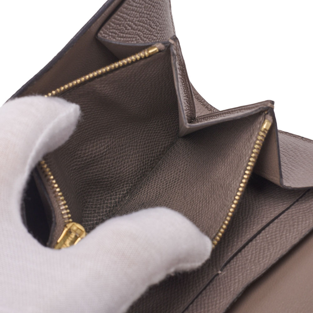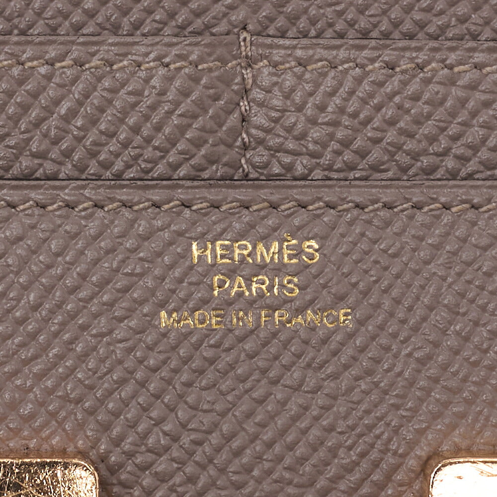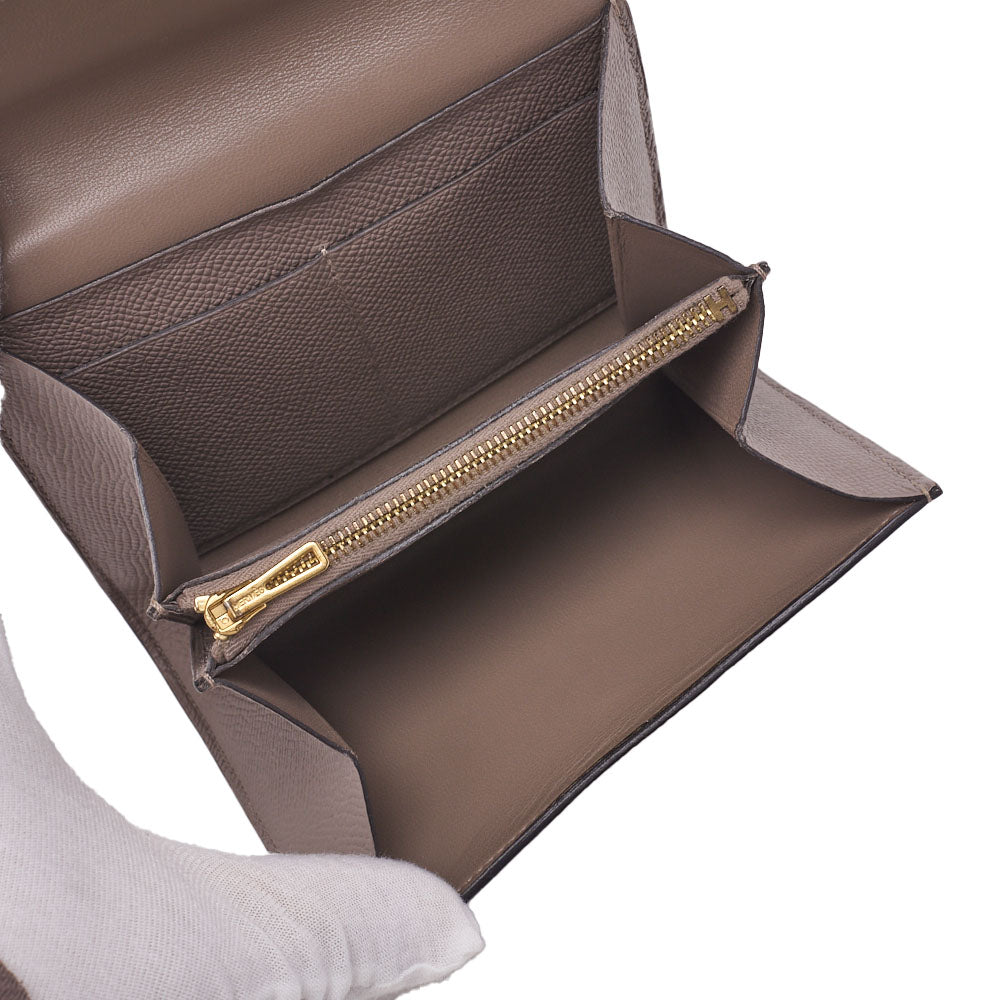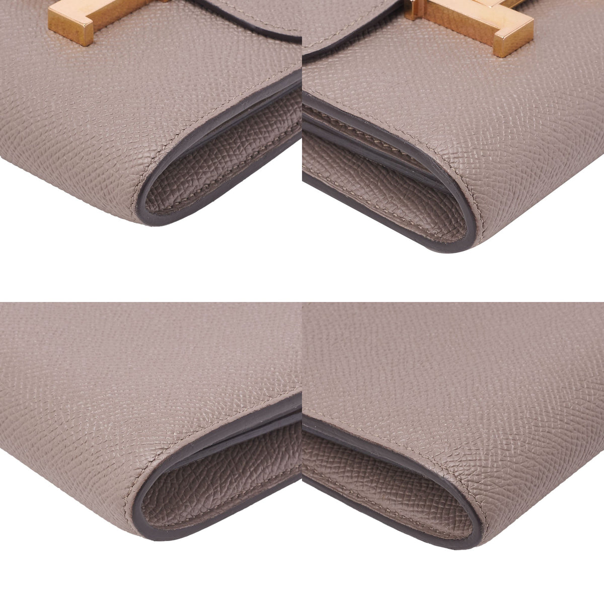 Gönnen Sie sich Luxus mit der HERMES Constance Compact Two-Fold Wallet Epson Etoupe (Goldbeschläge) , einem raffinierten Accessoire, das Eleganz und Funktionalität vereint. Diese atemberaubende lange Damenbrieftasche ist aus hochwertigem Vaux Epson-Leder in einem schicken Etoupe-Farbton gefertigt und bietet eine zeitlose Ästhetik, die jedes Outfit ergänzt.