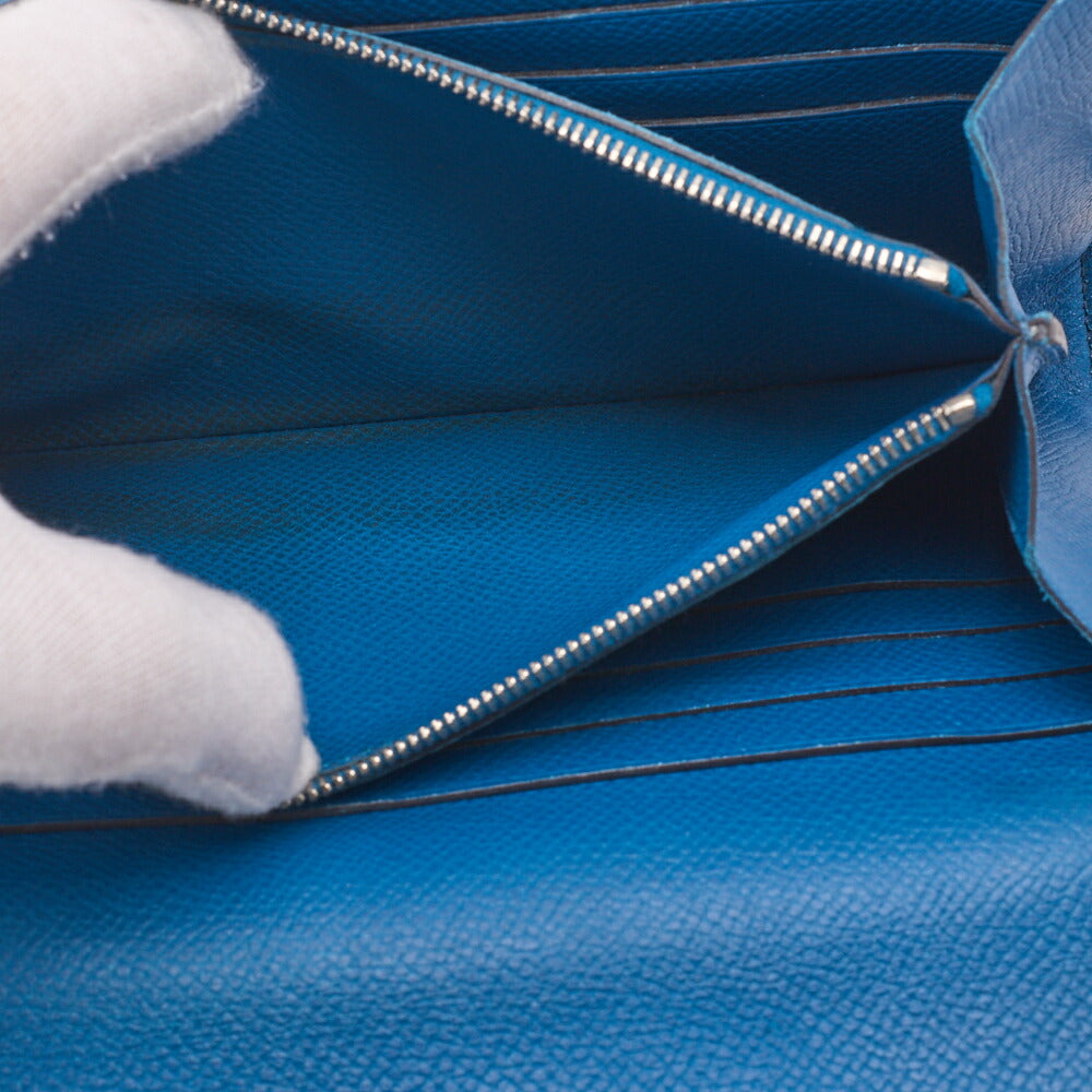 Gebrauchte Kelly Wallet 2 Fold Long Wallet Epson Leder Blau Ismir Silberfarbene Hardware Gebraucht