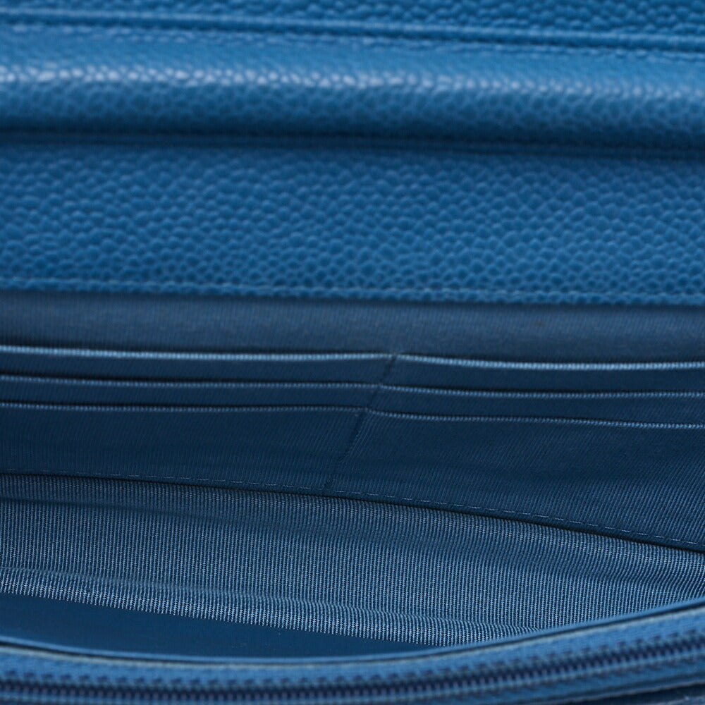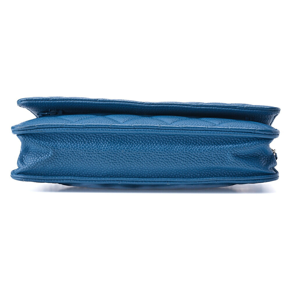 Erweitern Sie Ihre Accessoire-Kollektion mit dem CHANEL Matelassé Chain Wallet aus luxuriösem Kaviarleder in atemberaubendem Türkisblau . Dieses exquisite Portemonnaie verkörpert nicht nur den ikonischen CHANEL-Stil, sondern bietet mit seinem eleganten Design auch praktische Vorteile.