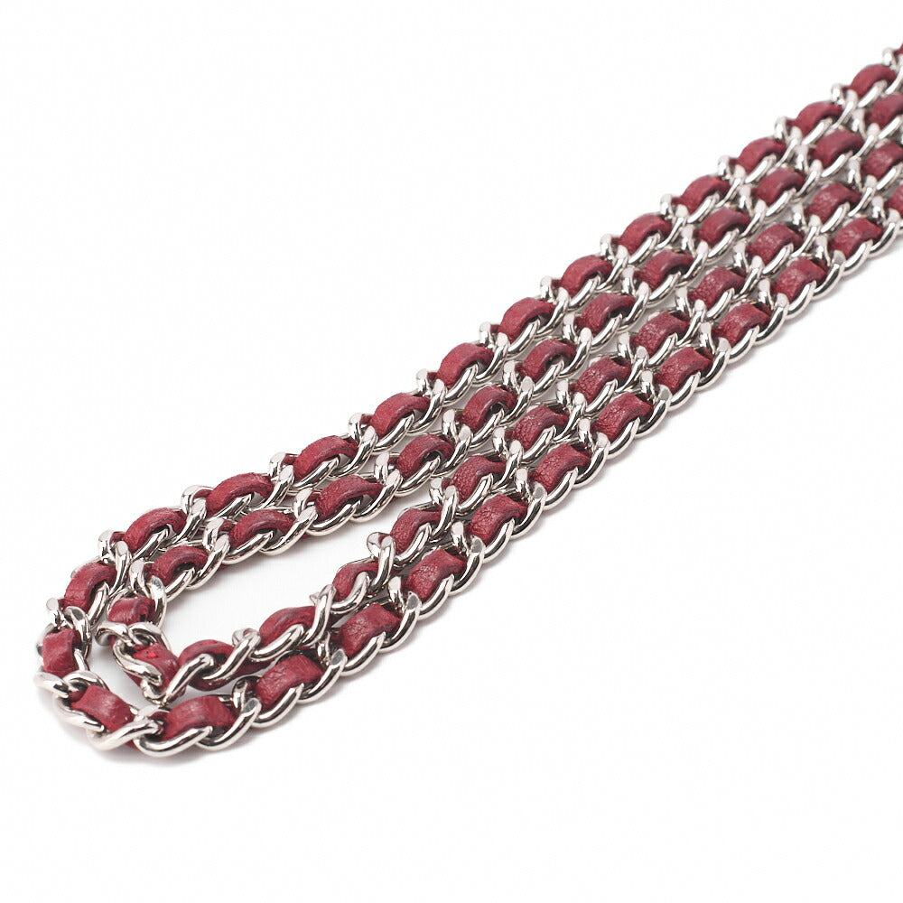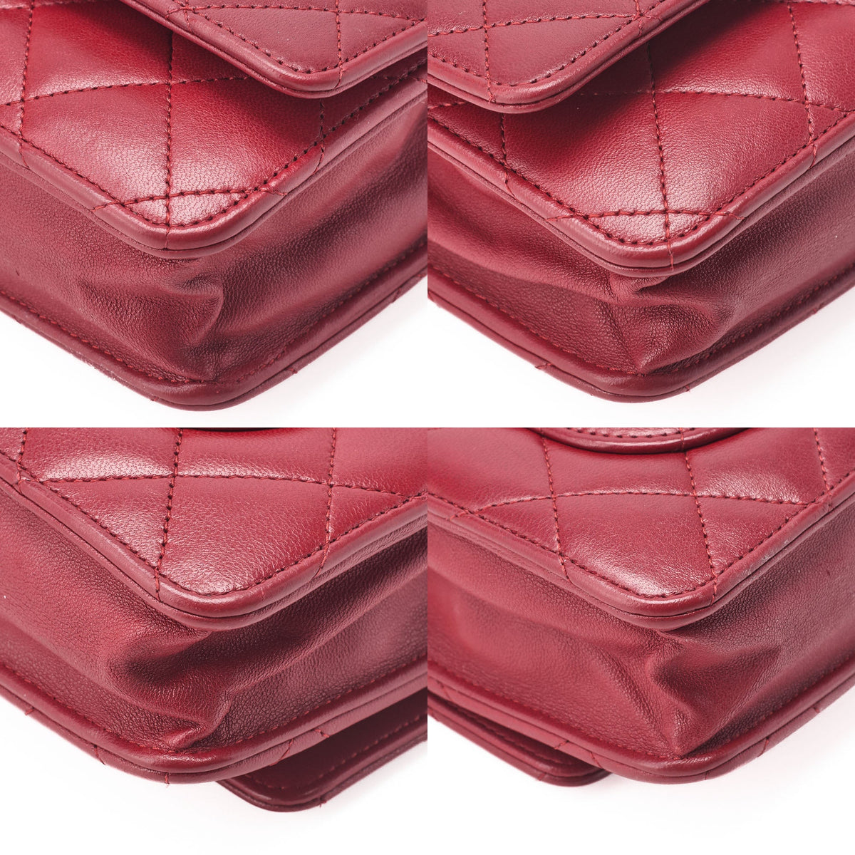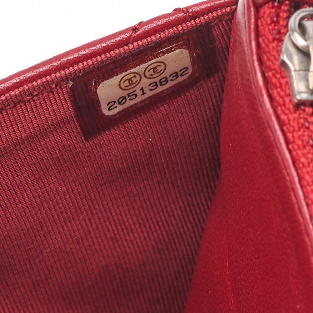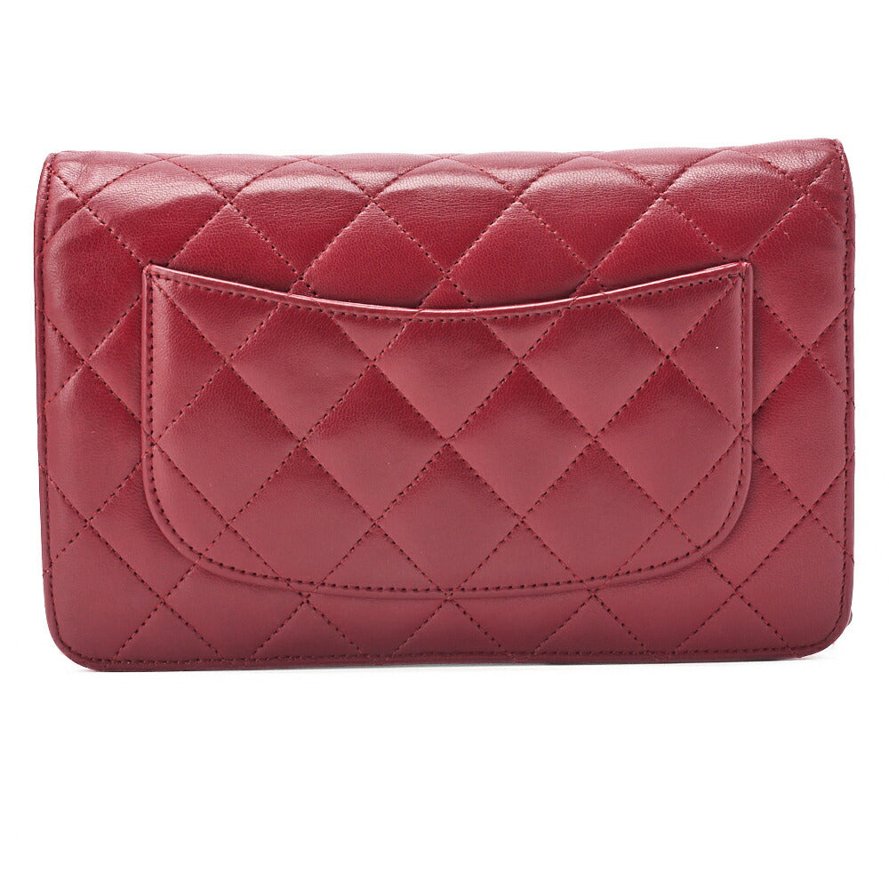 Pre-Owned Chain Wallet Matelassé Lammleder Rot Silberfarbene Hardware Pre-Owned