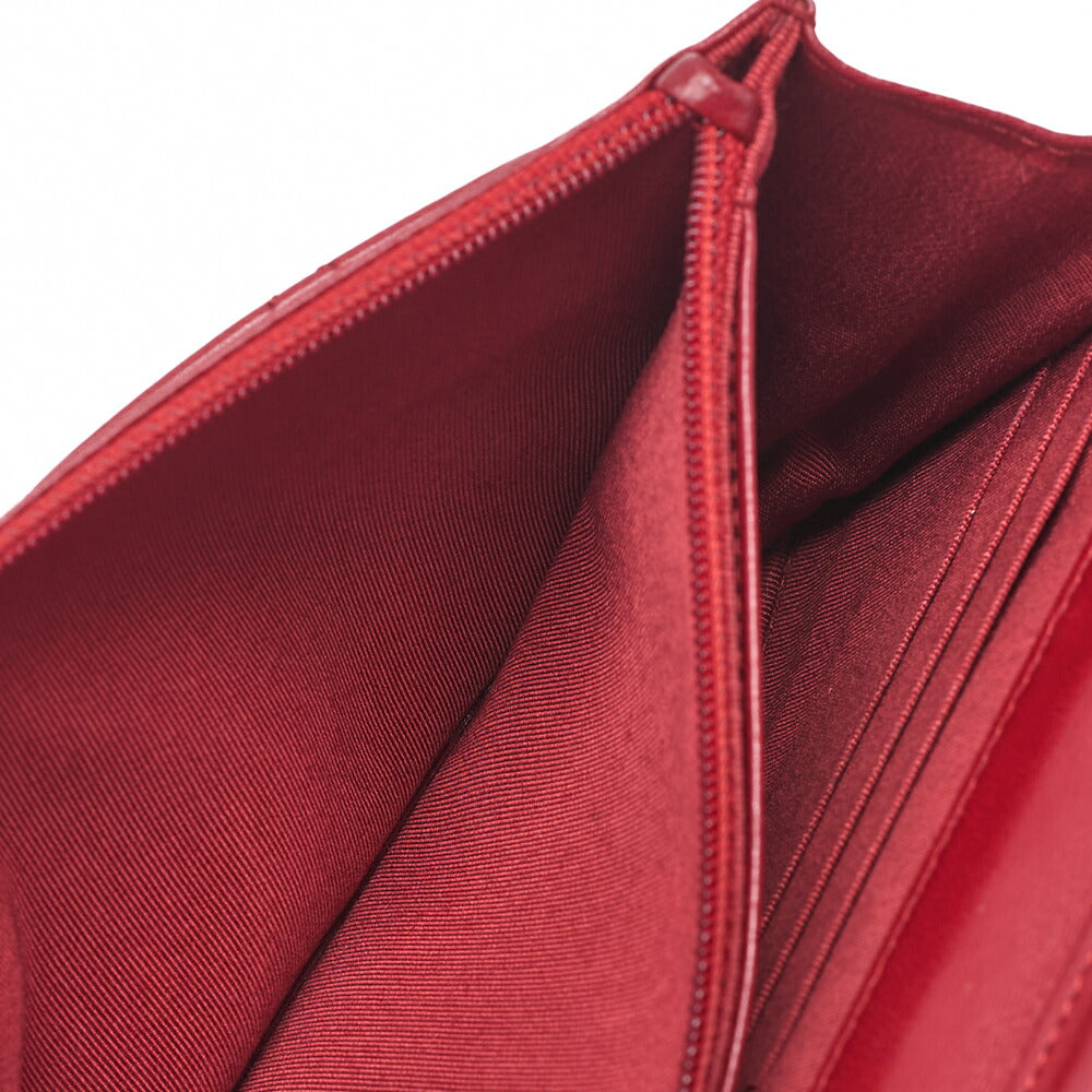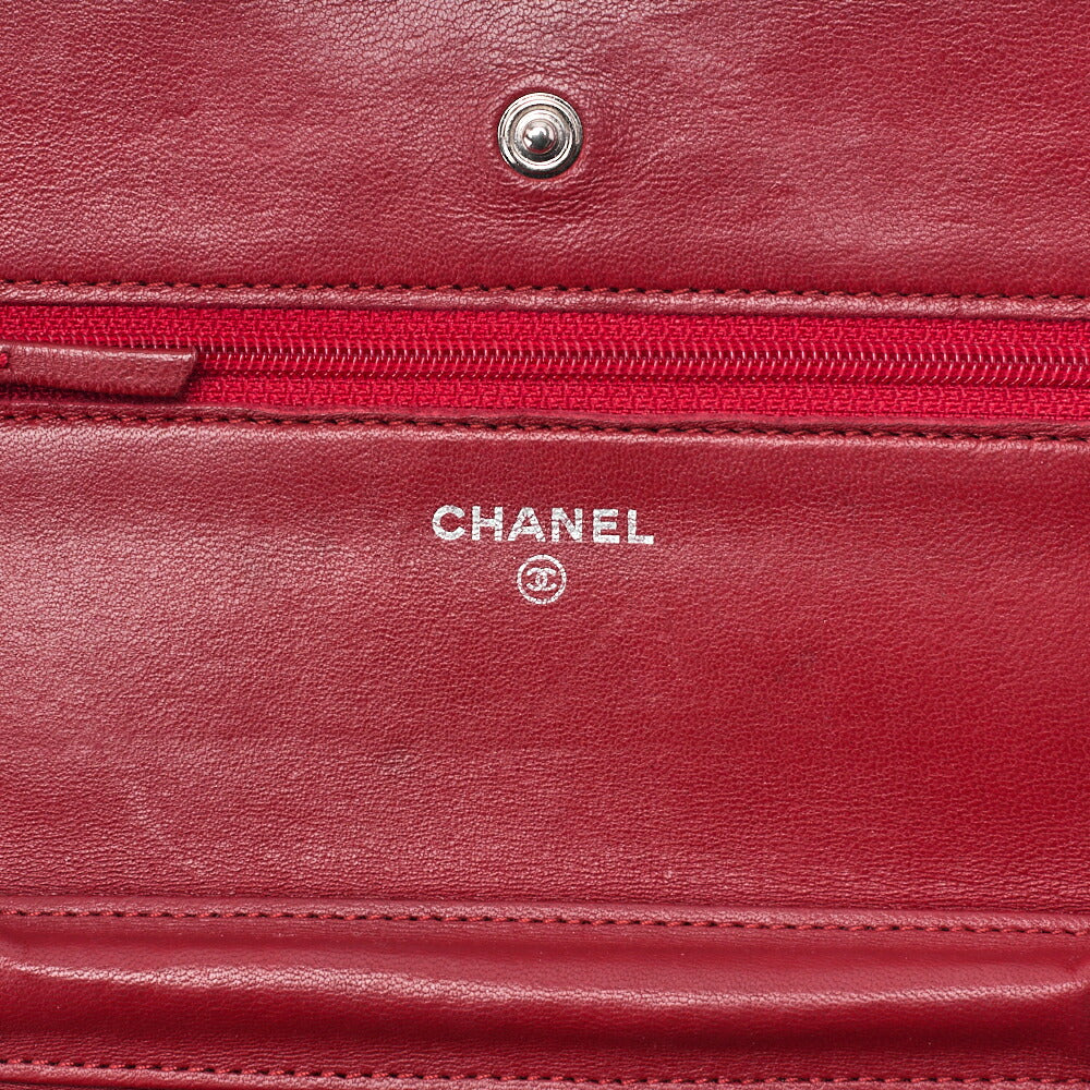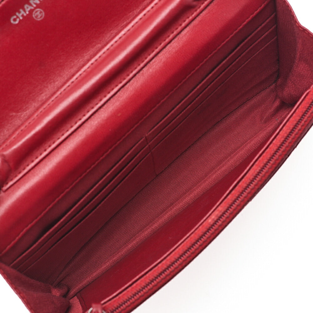 Wir präsentieren das CHANEL Matelassé Chain Wallet – eine atemberaubende Kombination aus Luxus und Funktionalität. Gefertigt aus hochwertigem Lammleder in leuchtendem Rot mit exquisiten Silberbeschlägen ist dieses faltbare Damenportemonnaie eine unverzichtbare Ergänzung für jede trendige Kollektion. Mit den Maßen ca. B 19 cm × H 13 cm × T 4 cm bietet es viel Platz für Ihre wichtigsten Dinge und behält gleichzeitig eine schlanke Silhouette.