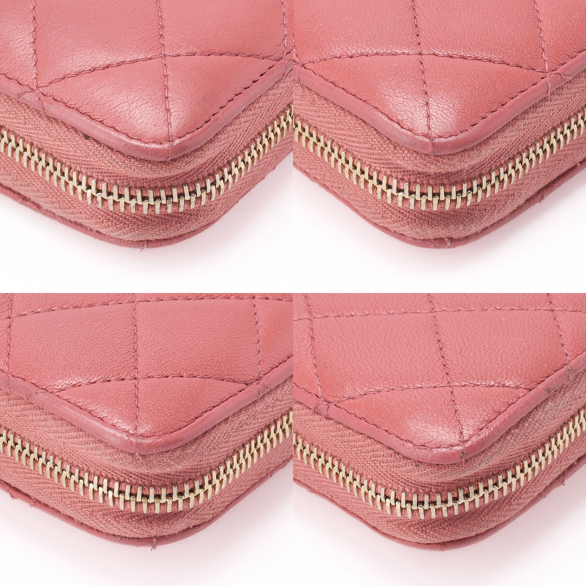 Gebrauchte Geldbörse, Matelassé, Lammleder, Rosa, Goldfarbene Metallteile, Gebraucht